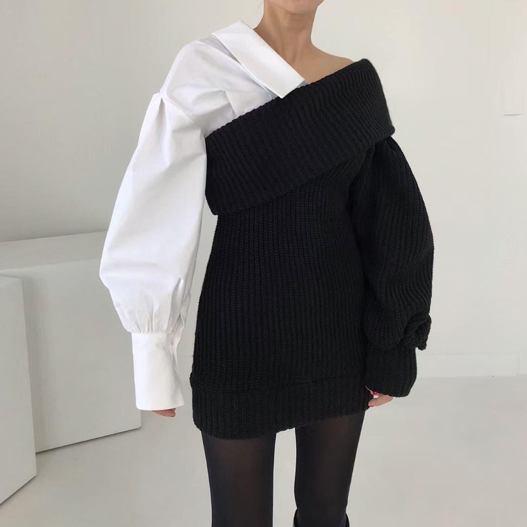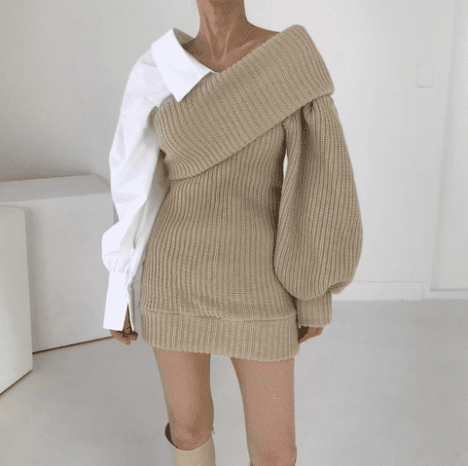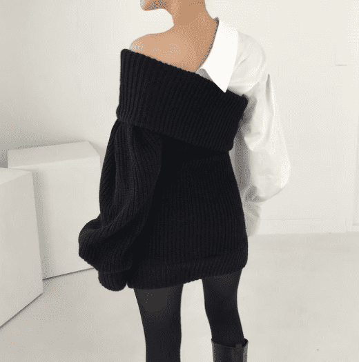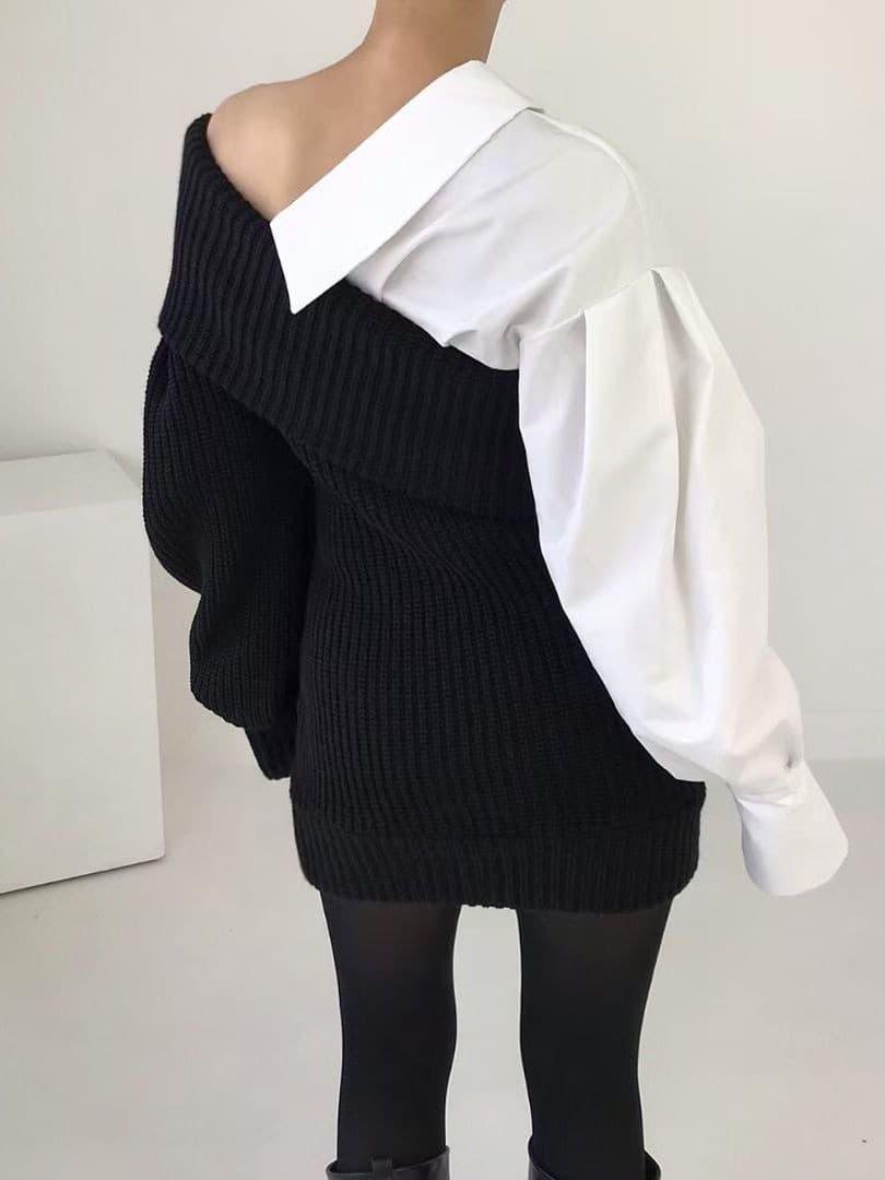 This knitted stitching fake two-piece slanted shoulder dress is designed to provide a fashionable yet comfortable look. Crafted from soft and lightweight fabric. it features a faux two-piece design with slanted shoulder detailing and a flattering silhouette. The dress offers ease of movement and breathability. and is perfect for a range of occasions.