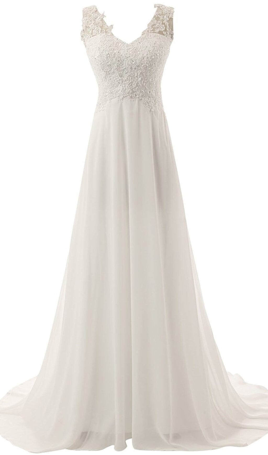 If you're in need of a stunning dress. you won't want to miss this cute dress. Pure white looks elegant and classic. We specially use the chiffon texture as the fabric of the skirt. which makes the skirt look more elegant and flexible. Every step you take feels as if you are in a pure white cloud. In addition. we use a lot of lace embellishment on the upper body. more highlighting the exquisite and gorgeous. Connecting the two straps to the back. there is a chiffon band that complements the lace on the back and makes your stunning back appear. It's hard not to look like an angel in it.
