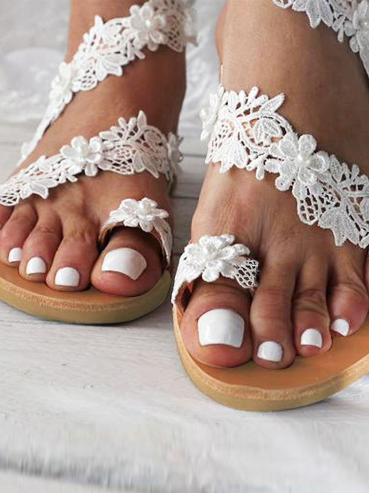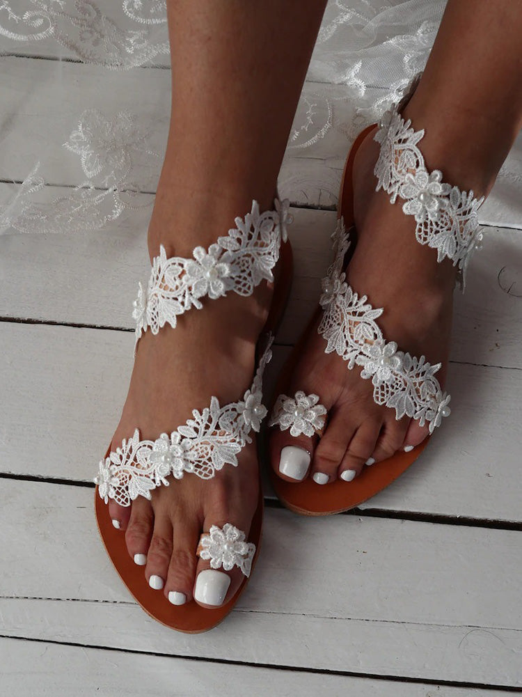 Lace Flower Pearl Flat Beach Sandals