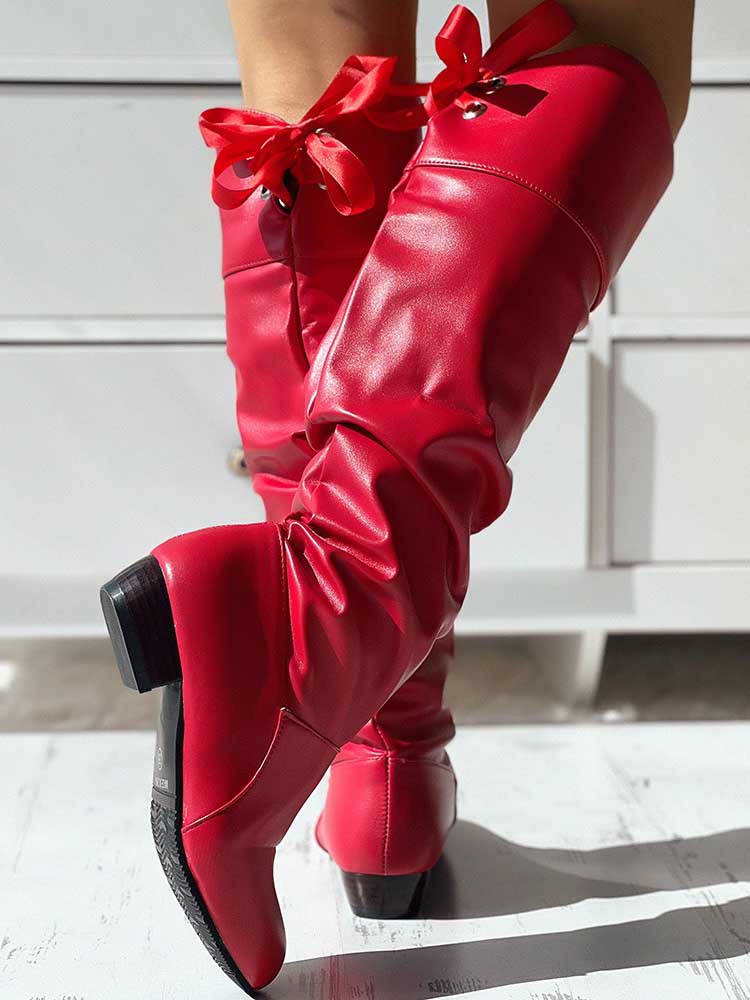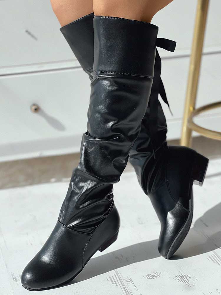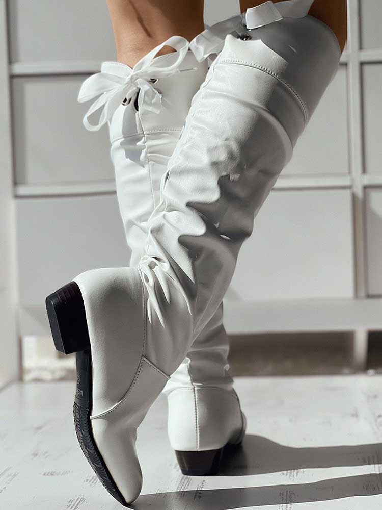 Lace Up Detail Leather Boots