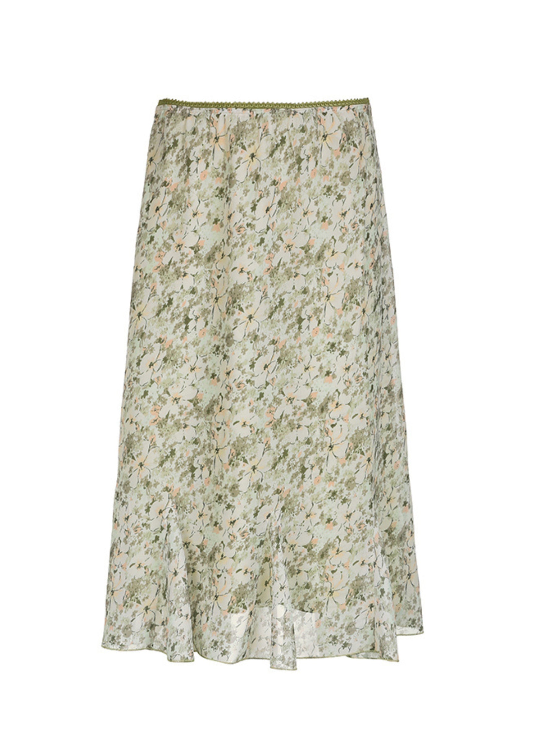 Introducing the Litzy Mesh Floral Midi Skirt! This A-line style in mint green is perfect for channeling fairycore vibes. The low waist and fishtail hem add a retro touch. while the feminine and elegant design brings a touch of sexiness. Part of the Aesvs Spring-Summer Collection.