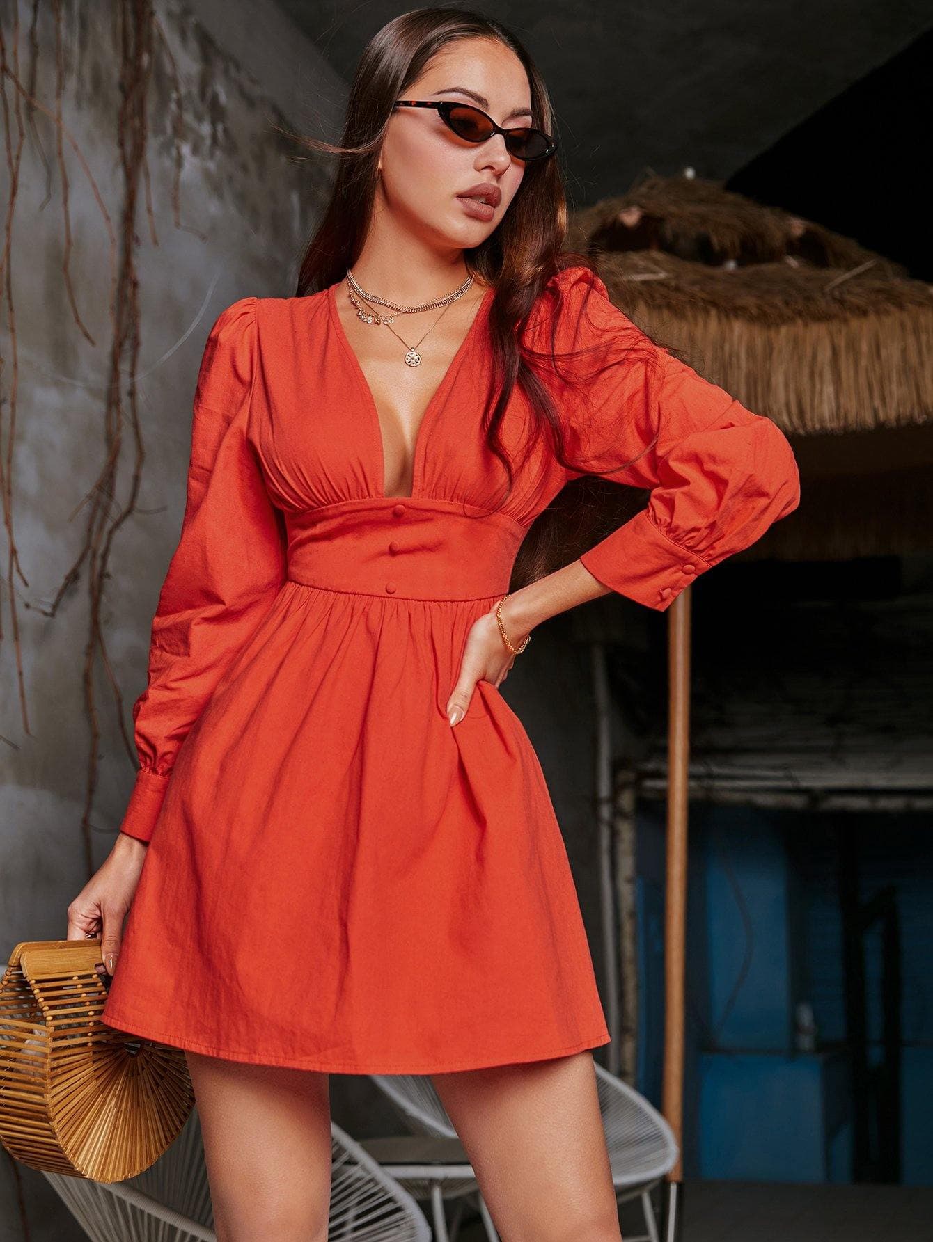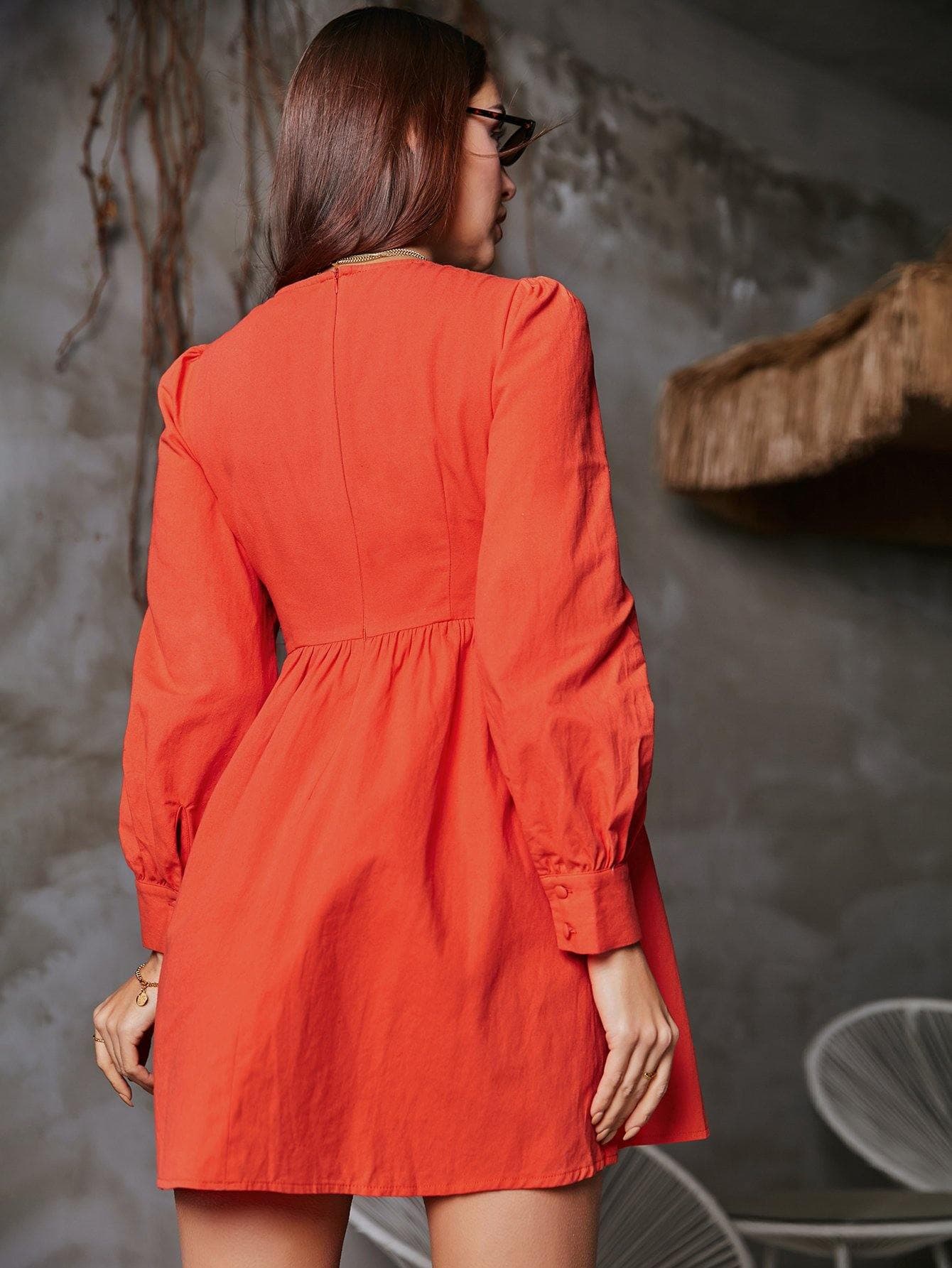 This timeless mini dress features a lightly structured fabric. a flattering scoop neckline. and long sleeves for a classic look. The vibrant red hue adds a bold touch that is perfect for any occasion. Tailored luxe design ensures comfort and a flattering fit for all body types.