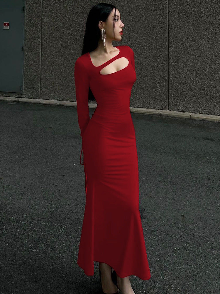 Feel confident and alluring in this long-sleeved pleated dress with a stunning backless design. The intricate pleats add texture and movement. while the bold hollow back adds a touch of drama. Perfect for any special occasion or evening out.