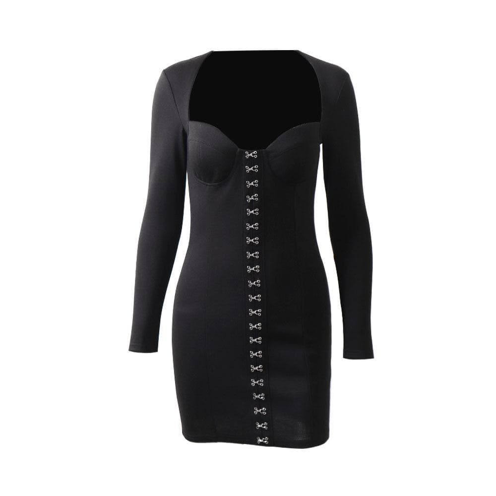 This stylish dress combines premium materials with modern design for an unbeatable combination of comfort and elegance. It features a long-sleeved V-neck with a breast-wrapped metal button design. and a hip-hugging skirt for a flattering finish. Crafted from quality materials. this dress ensures long-lasting comfort and durability.
