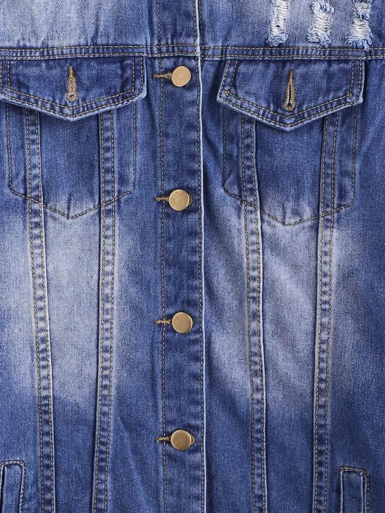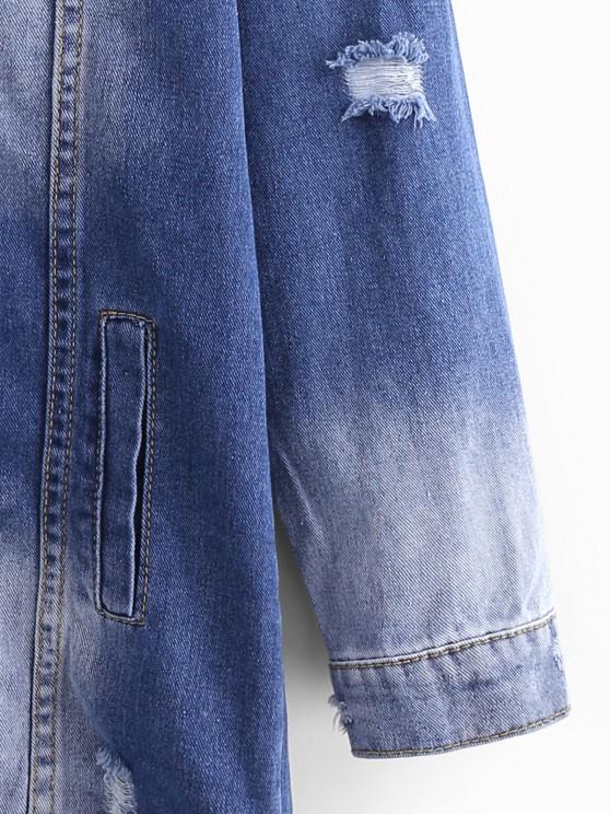 Longline Button Up Distressed Denim Coat