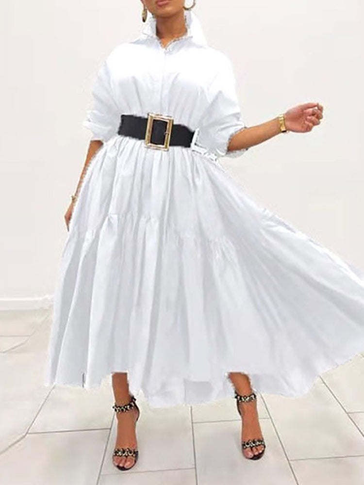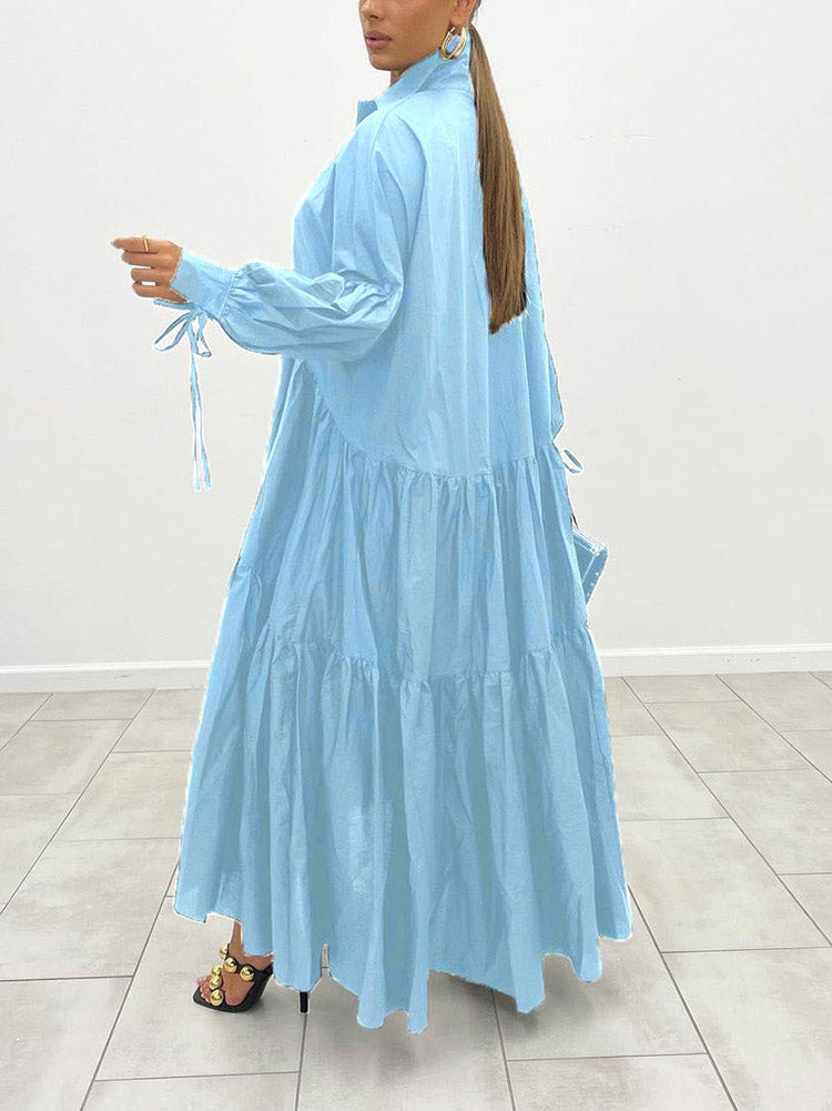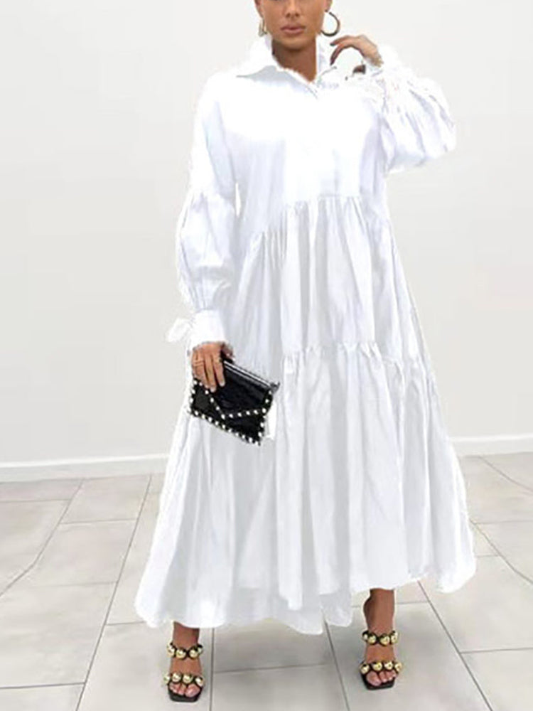 Loose Solid Long Shirt Dress