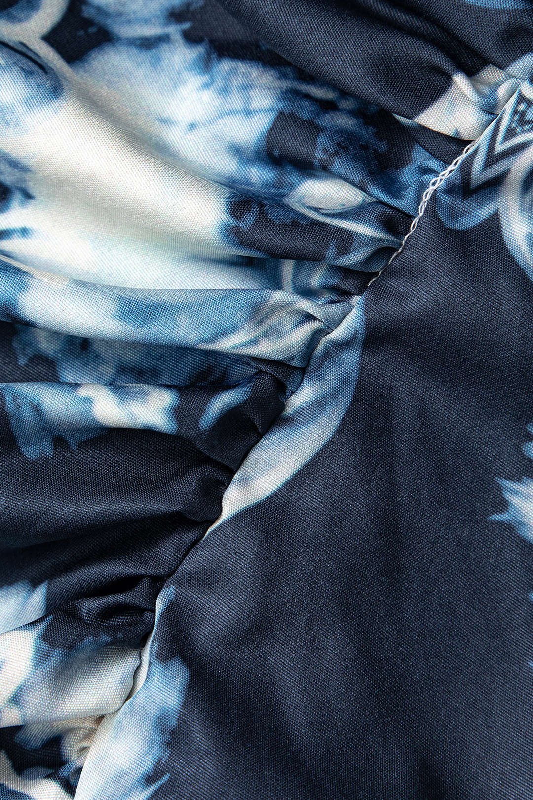 Floral Print V-neck Cut Out Ruched Wrap Mini Dress
