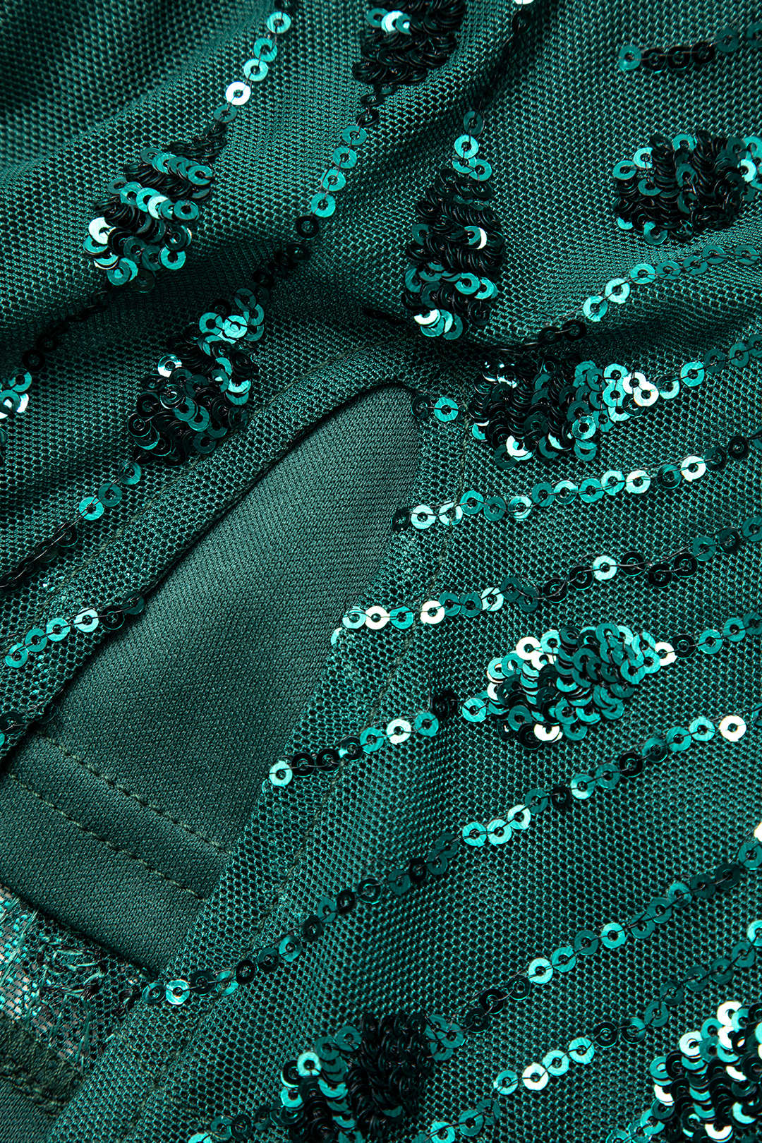 Sequin Embellished Square Neck Mesh Split Mini Dress