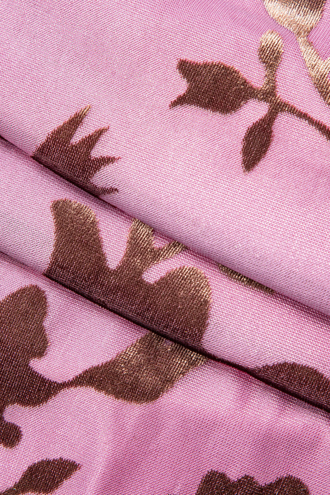 Flocked Leaves Print Long Sleeve Tie Backless Mini Dress