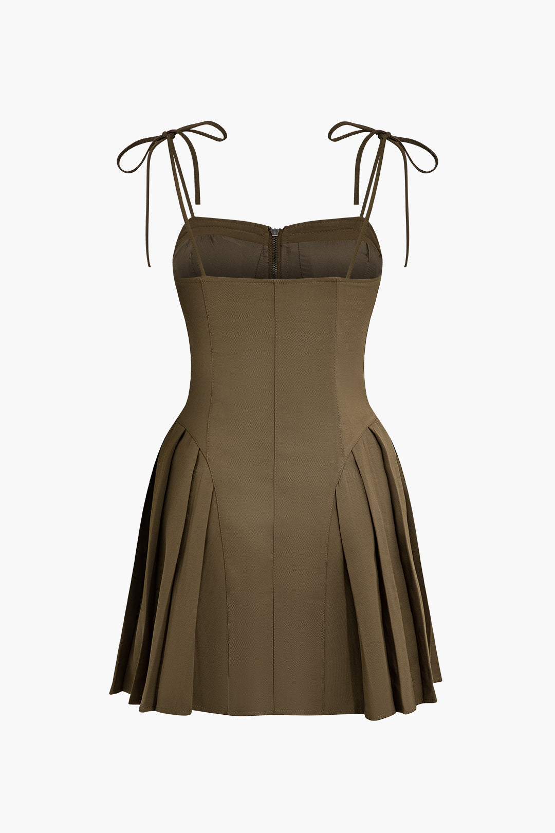 Tie Strap Zip-UP Pleated Bustier Mini Dress