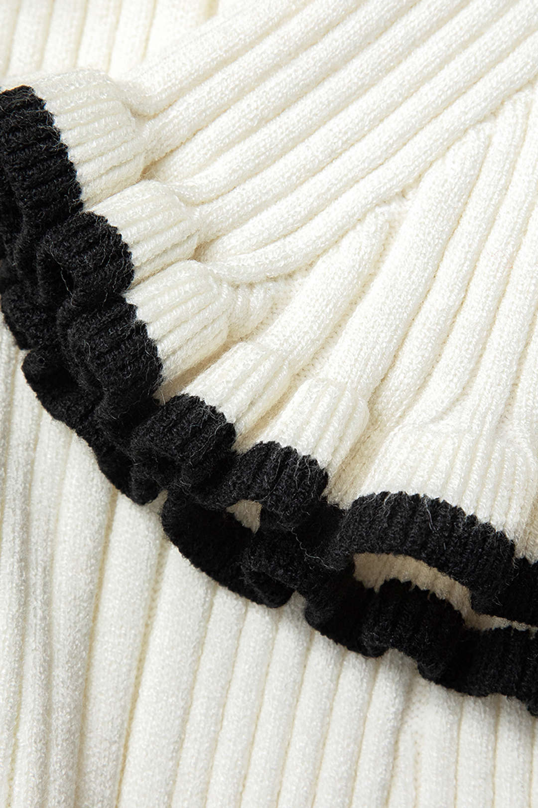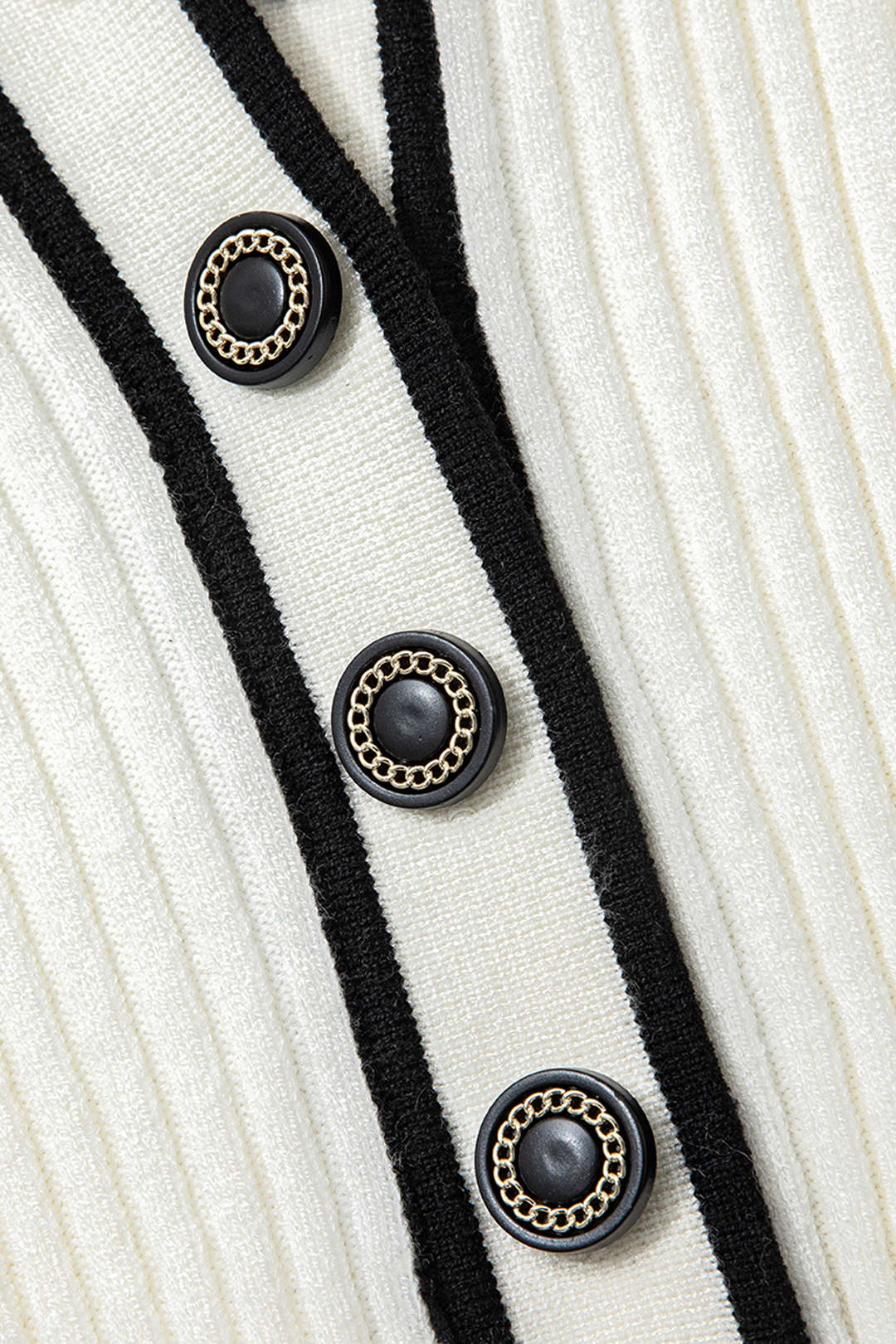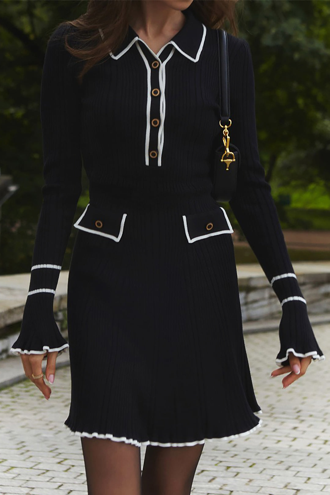 Contrast Button Up Bell Sleeve Knit Midi Dress