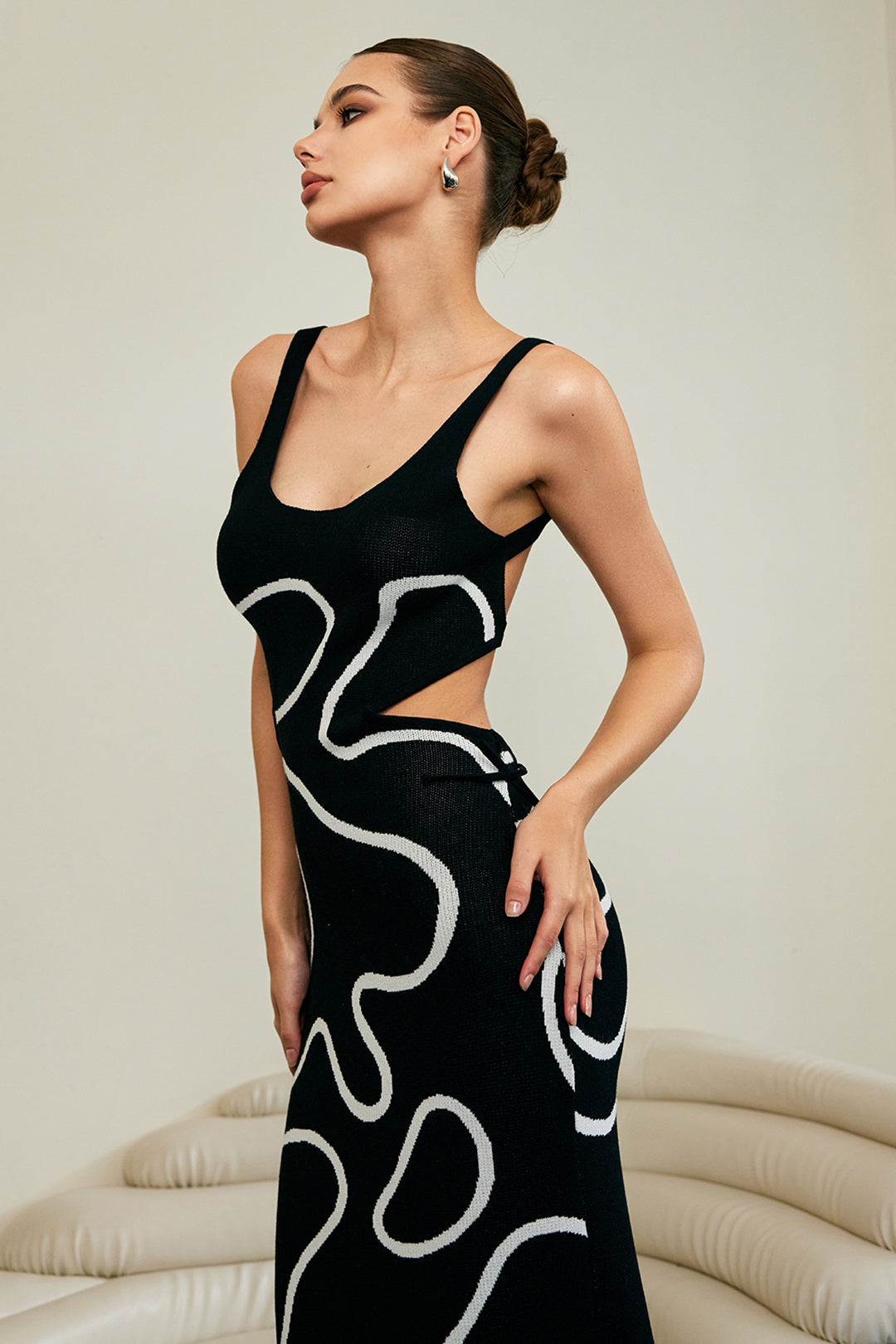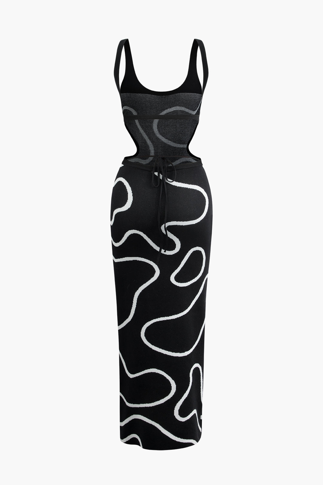 Line Pattern Square Neck Cut Out Knit Maxi Dress