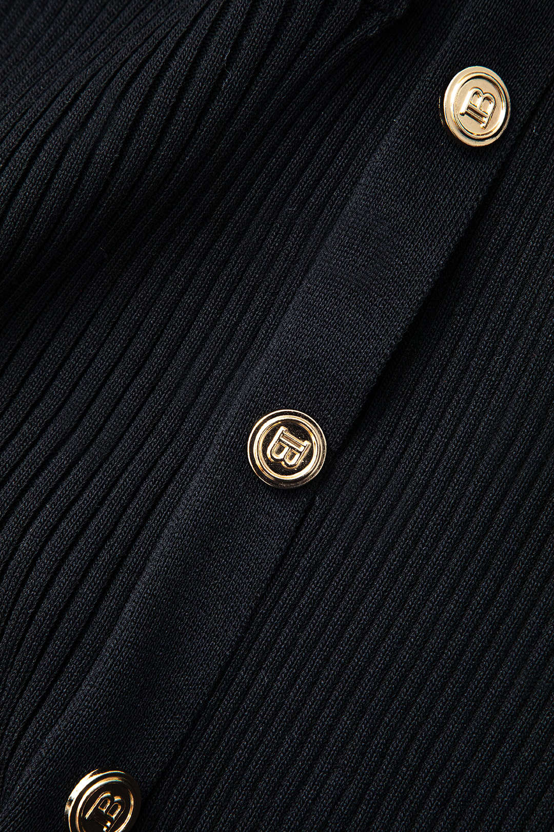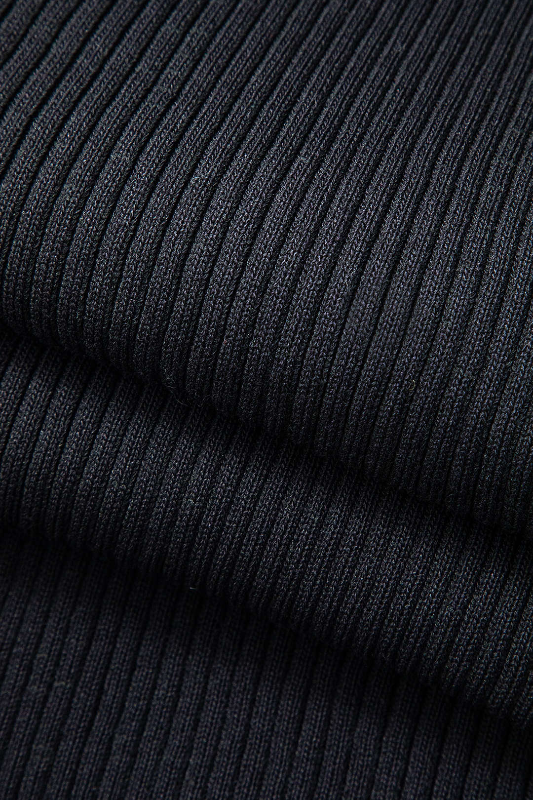 V-neck Button Up Rib Knit Long Sleeve Midi Dress