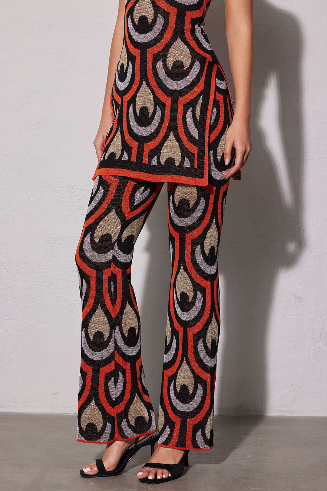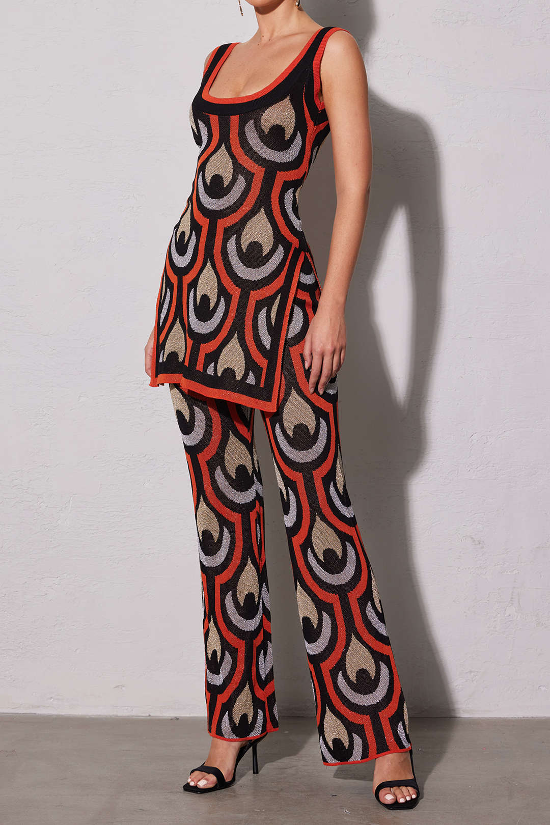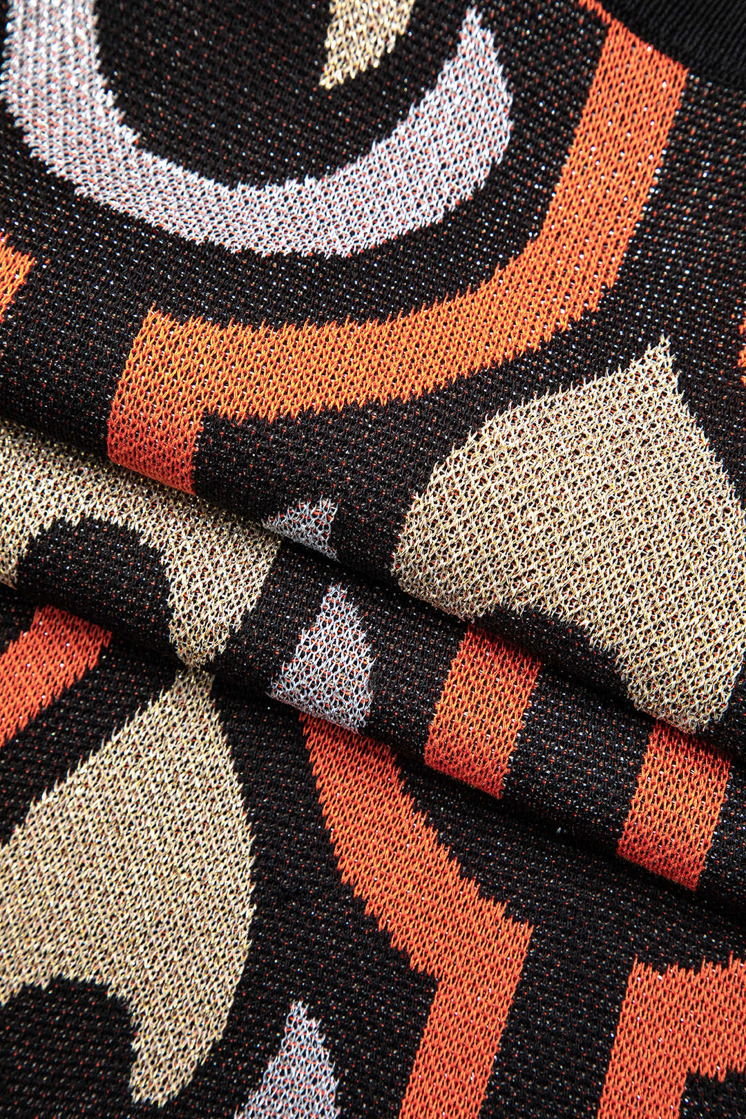 Geometric Pattern Knit Slit Sleeveless Mini Dress