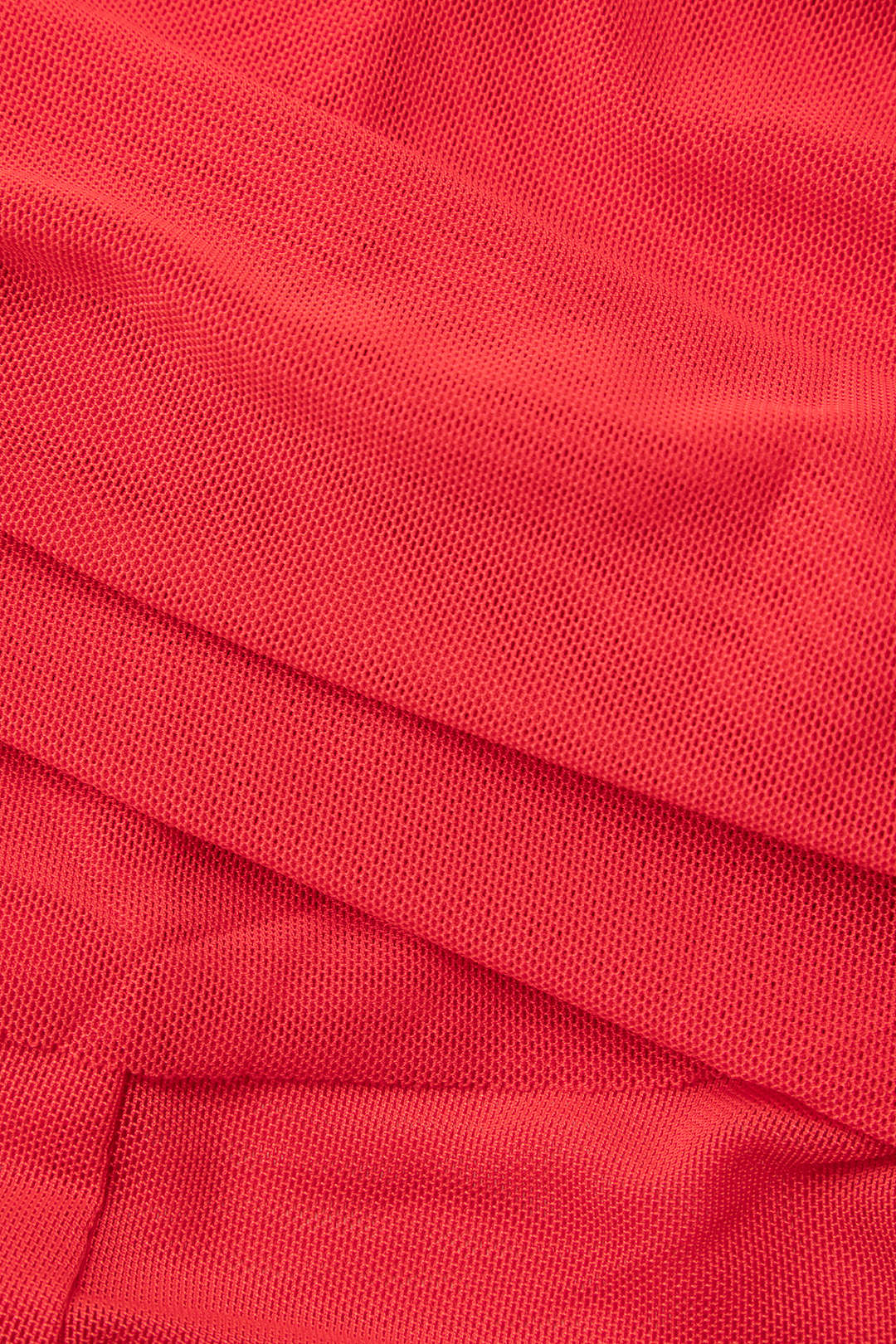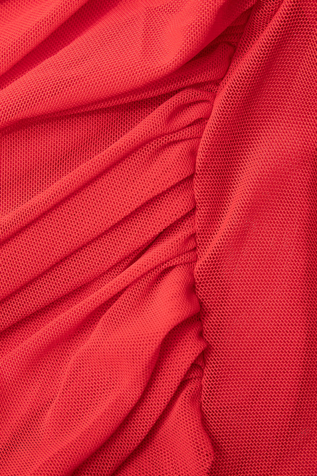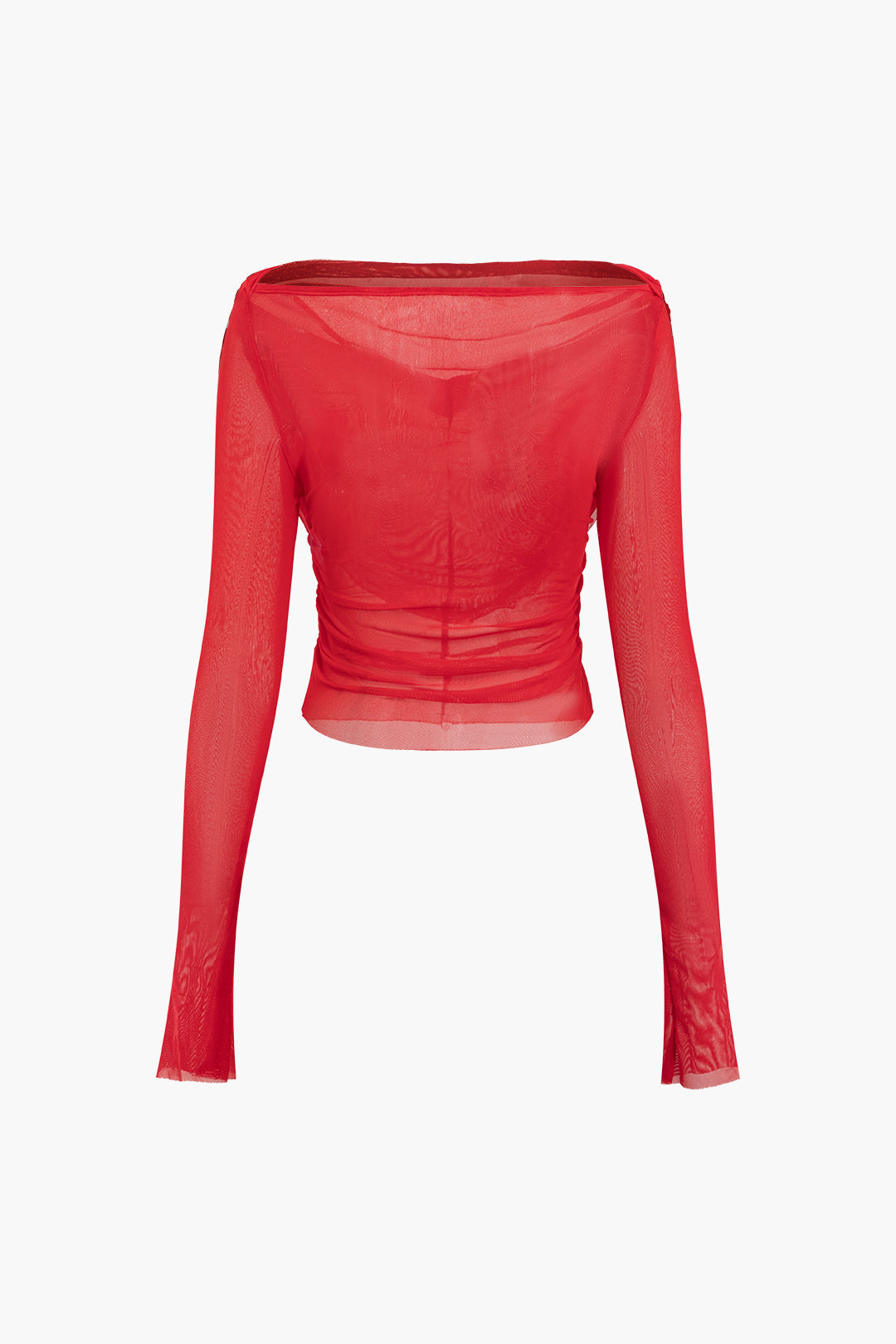 Wrap Ruched Mesh Boat Neck Long Sleeve Top
