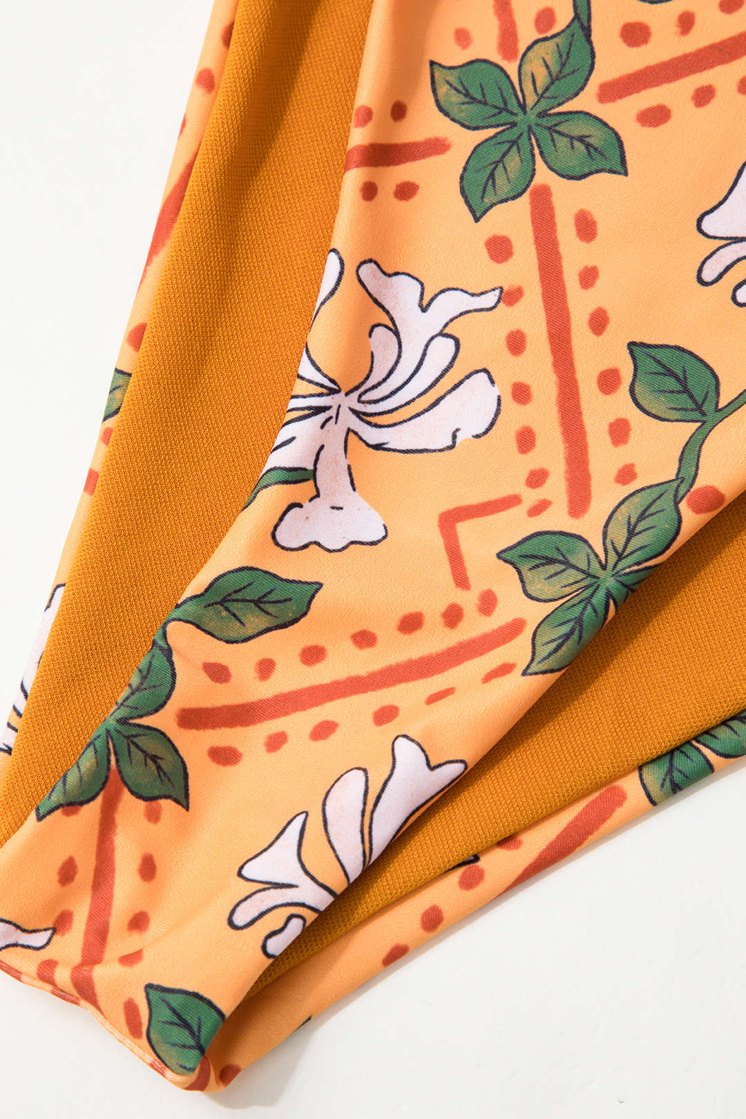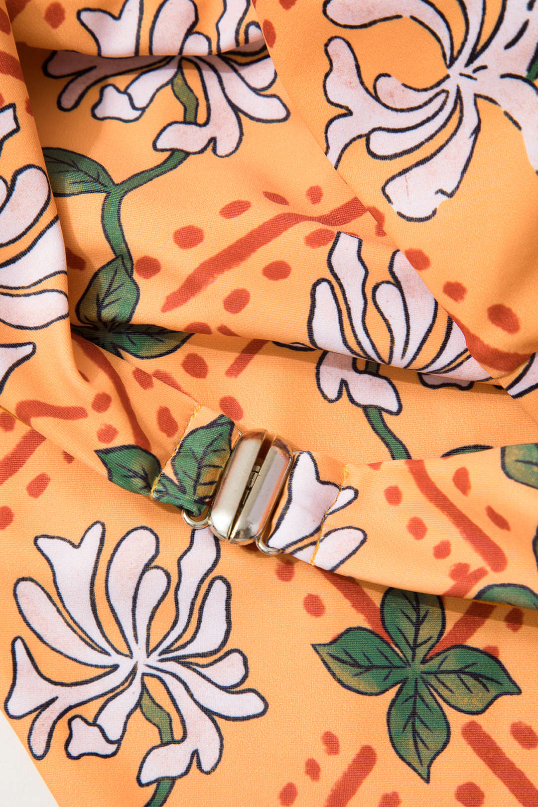 Floral Print Tie Halter Cut Out Ruched Swimsuits And Wrap Cover-Up Skirt Set