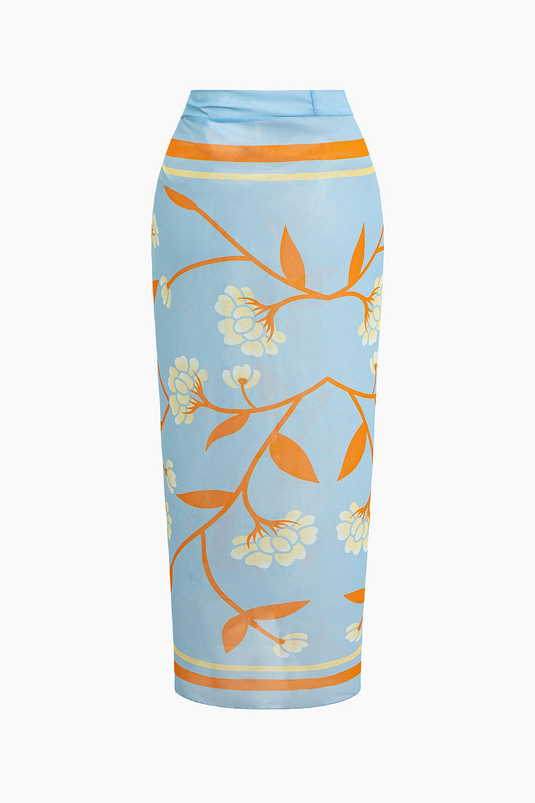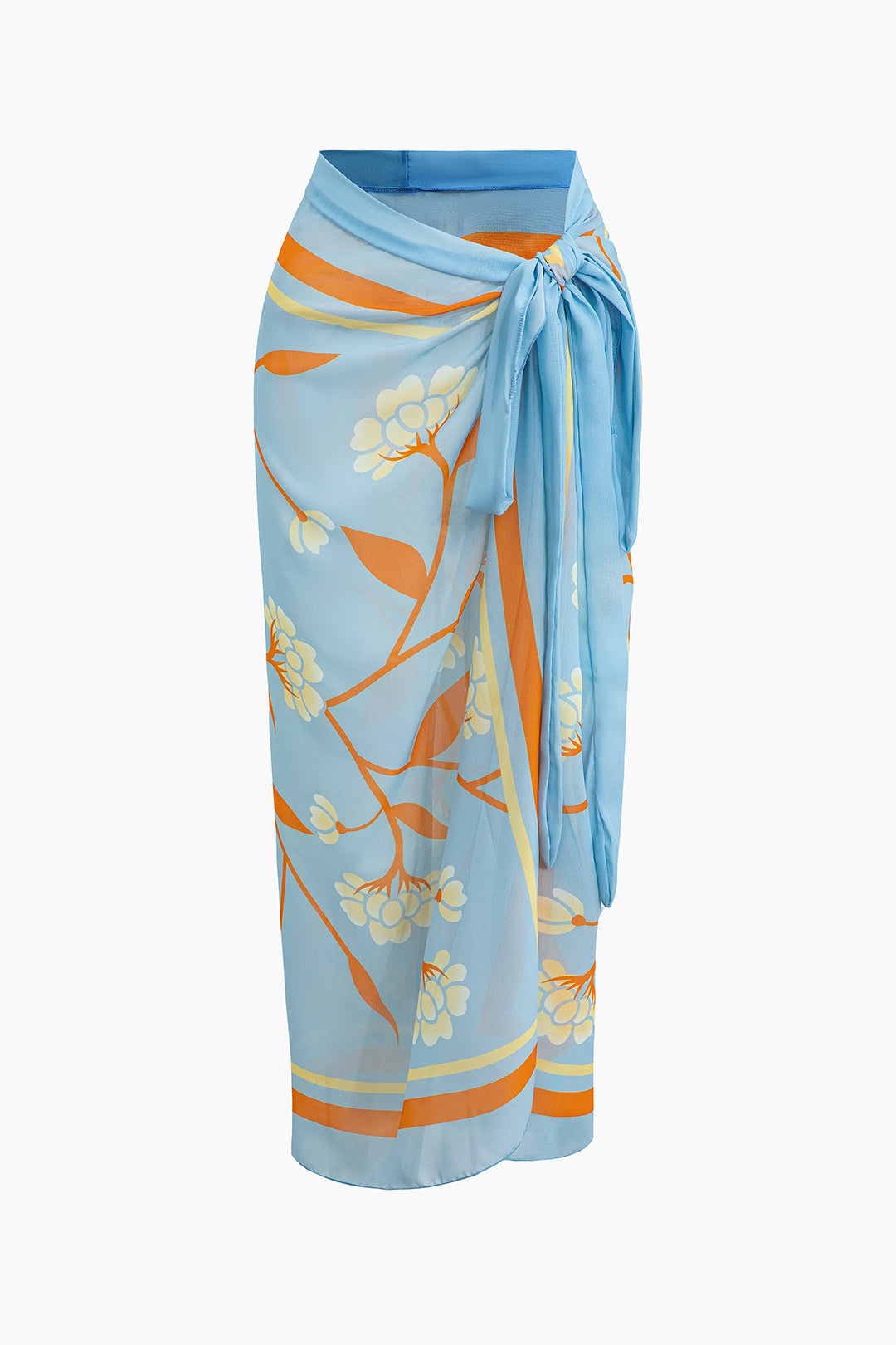Floral Print Tie Halter Bikini And Wrap Knot Skirt Swimsuit Set