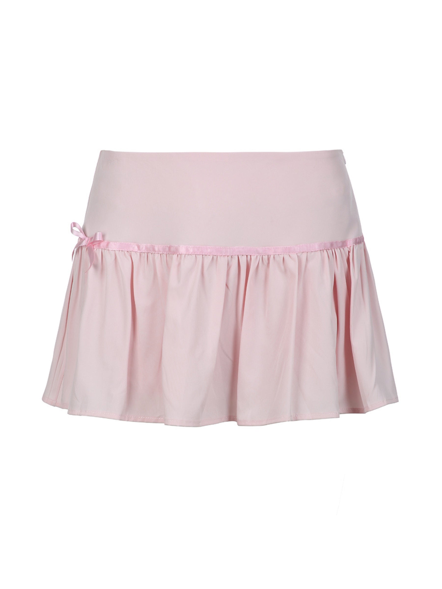 Add some flirty flair to your wardrobe with the Meera Mini Skirt in Pink! Featuring a mini bow detail. this skirt is both romantic and sexy. perfect for showing off your sweet side. Part of the Aesvs Sweet & Spicy Collection.