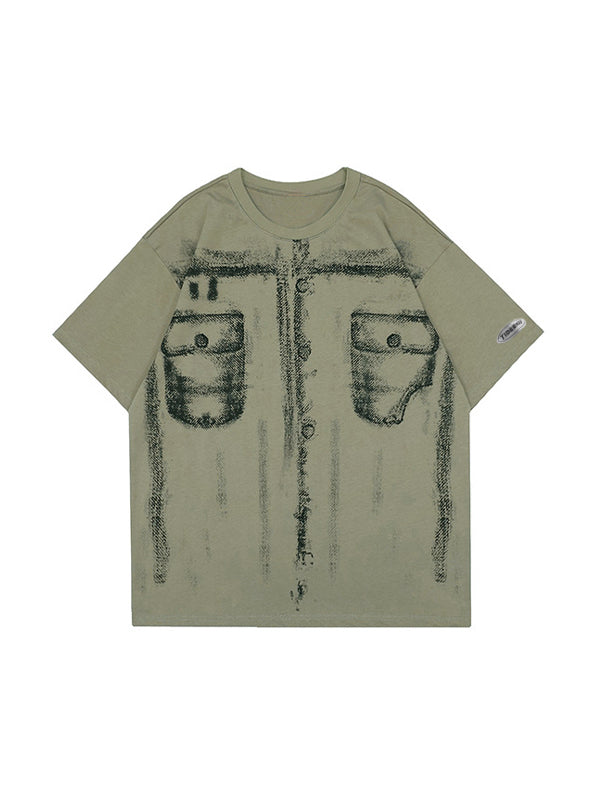 Description: Attracted by the fun patterns on these t-shirts. It's crafted from washed cotton fabric. with a relaxed silhouette. and has a design of dyed pockets button pattern on the front.