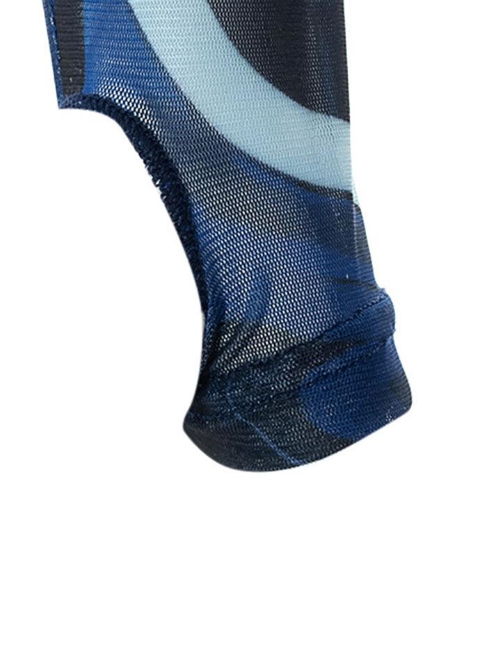 Style: Street Color: Blue Fabric Content: Polyester. Spandex Fit Type: Slim fit Neckline: Crew Neck Sleeve Length: Long Sleeve Design: Printed Allover. Thumb Hole Detail