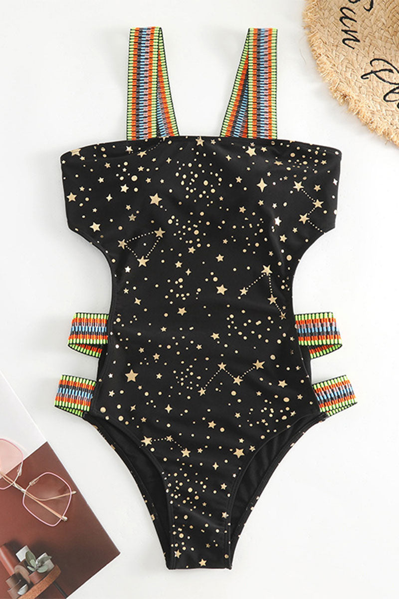 Metallic Star Print Stunning Cutout One Piece Swimwear