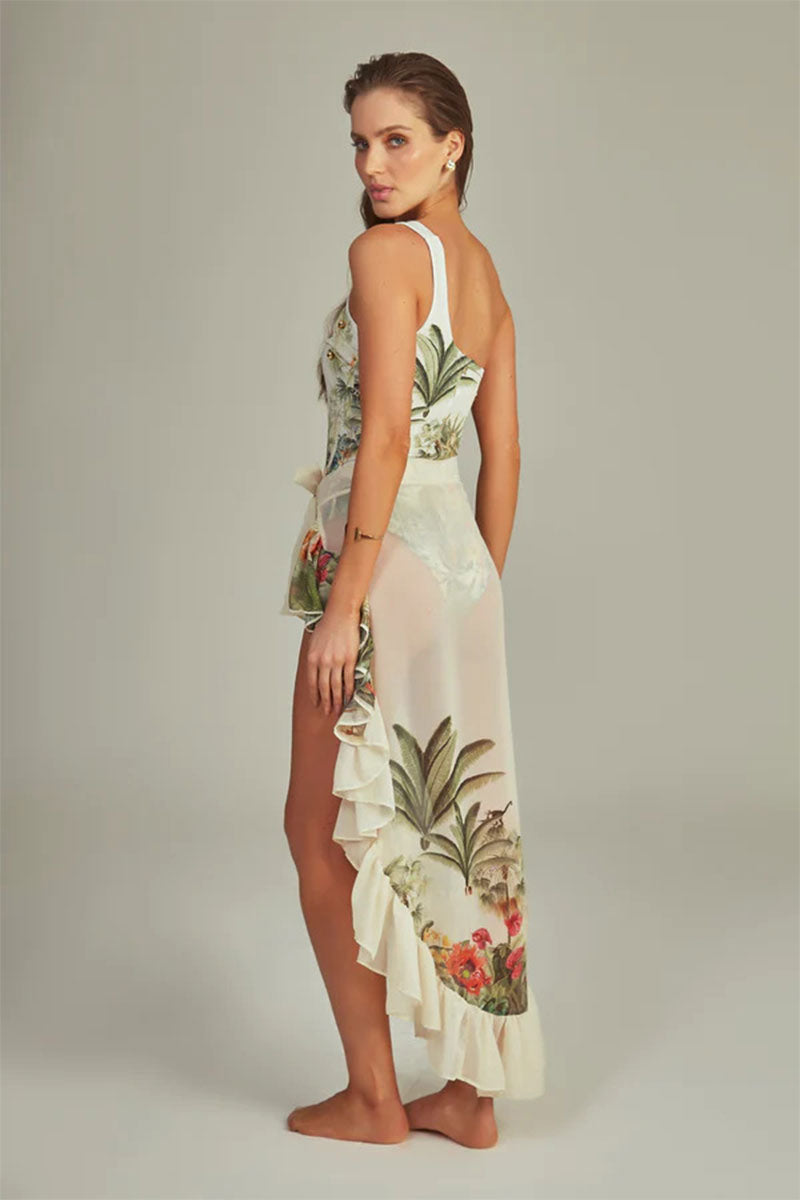 Natural Print Flattering Cutout One Piece Swimwear & Lace-Up Skirt Beachwear