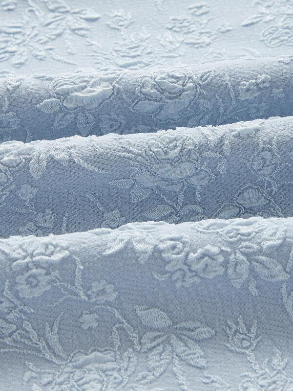 Notch Collar Lantern Sleeve Self Belted Floral Jacquard Coat