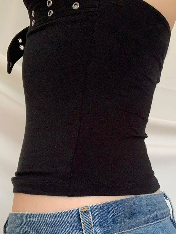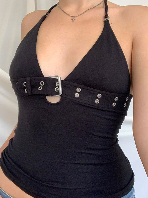 Description: This sleeveless top has a versatile style that is perfect for casual. street. y2k. sexy. sweet. punk. and hip-pop fashion. The polyester and spandex fabric is stretchy. comfortable. and form-fitting. giving it a slim-fit design that accentuates the body's curves. The front cutout with double o-ring accents design adds a unique touch of style and sexiness to the top. making it perfect for a night out or any special occasion. Overall. this top is a must-have for anyone looking to add a trendy and stylish piece to their wardrobe.