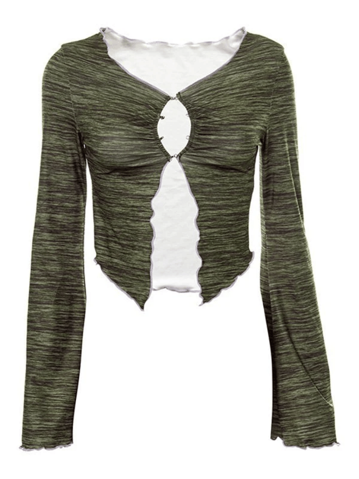 Design: Open Front. Hook Fastening. Lettuce Edge. Flared Cuffs