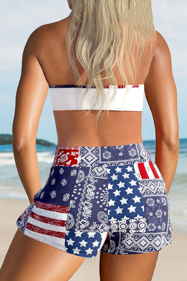 Paisley Print Patchwork Halter Collar Boyish Three Pieces