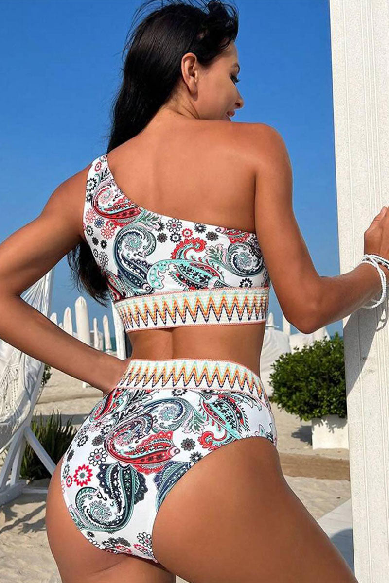 Paisley Print Retro Chevron Tape Patchwork One Shoulder Bikini