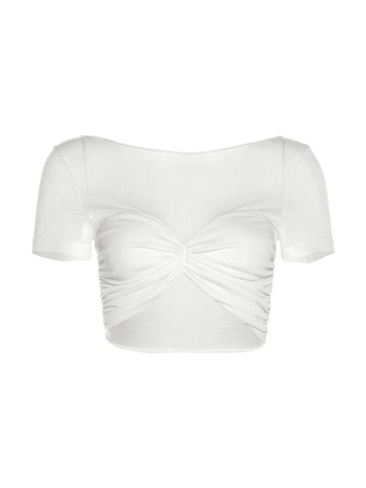Description: Embrace your sexy side with this Patchwork Bardot Crop Top. Made from see-through polyester and spandex fabric. this top features a ruched patchwork design on the chest for a unique and trendy look. Perfect for a casual day out or a night on the town. Pair it with high-waisted jeans or a skirt to complete your stylish ensemble. Stay confident and fashionable in this must-have top.