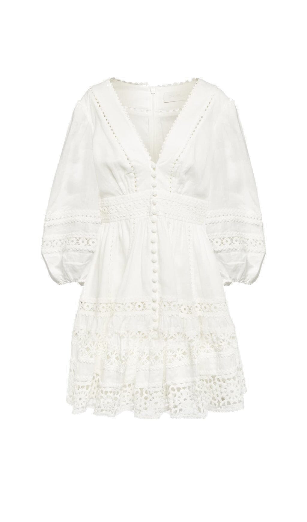 PLUNGING NECK LACE MINI DRESS IN WHITE