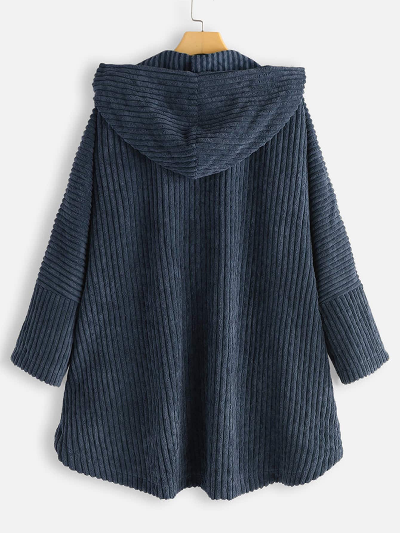 Plus Corduroy High Low Hooded Coat
