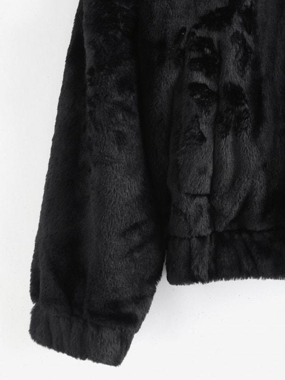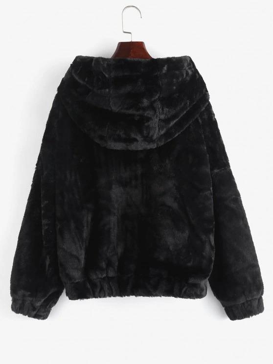 A warm and cozy layer for relaxed weekends. this hoodie coat is crafted from the fuzzy faux fur in a basic black hue. Wear it over an easy jeans-and-tee look with your favorite worn-in sneakers.