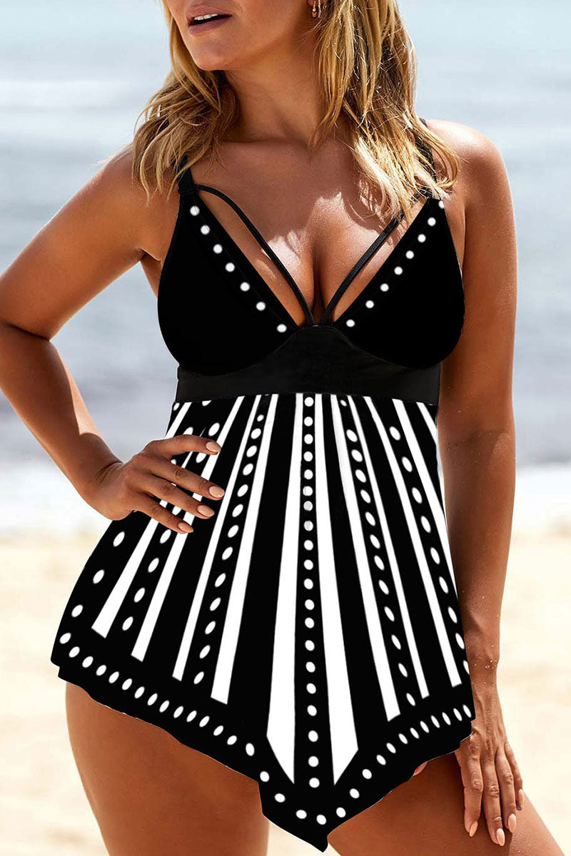 Polka Dot Patchwork Pretty Irregular Hem Tankini