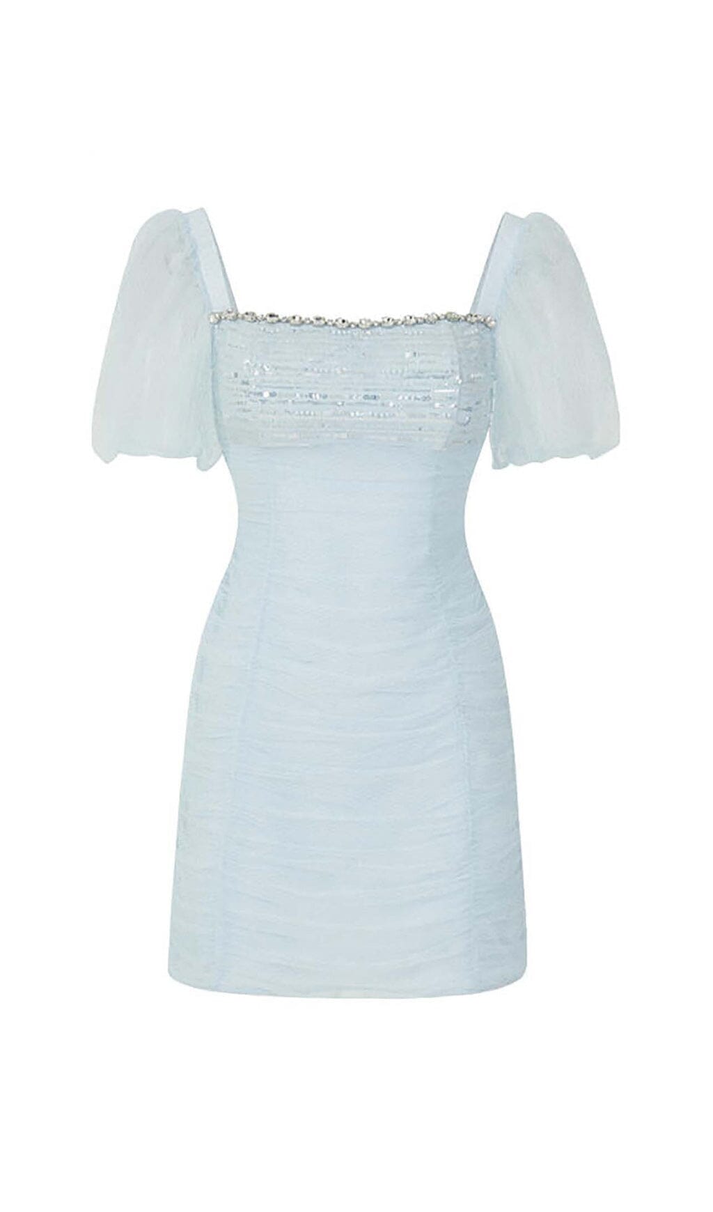 PUFF SLEEVE PERSPECTIVE MINI DRESS IN SKY BLUE