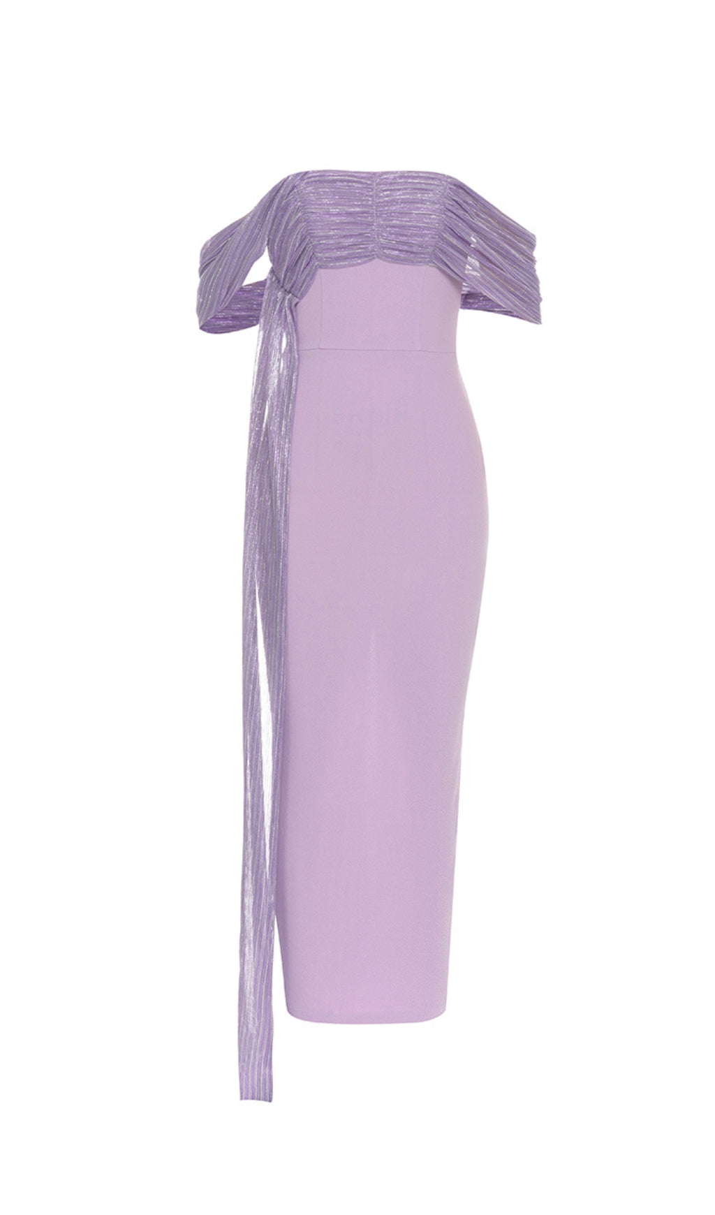Dress to impress in this sophisticated one-shoulder maxi dress. Crafted from the finest satin fabric in a glossy purple hue. this timeless piece features dramatic right dropped sleeves for a stunning silhouette. The perfect addition to your luxury wardrobe.