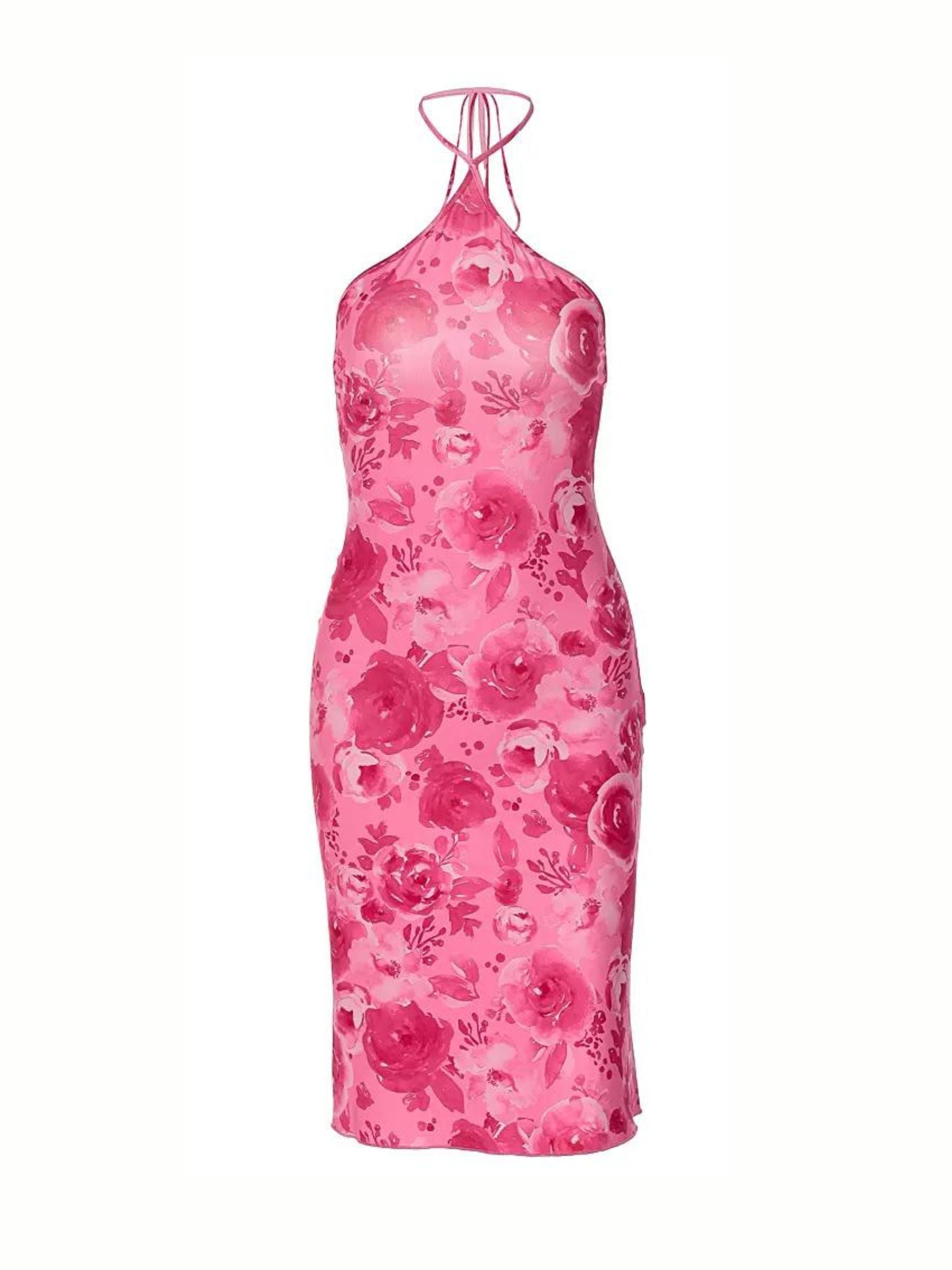 Add a touch of romance to your wardrobe with the Rhea Floral Midi Dress in Pink. The halterneck and sleeveless design create a slim. bodycon fit. while the backless detail adds a flirty touch. Perfect for the summer season. this dress is a must-have from Aesvs Summer's in Bloom Collection.