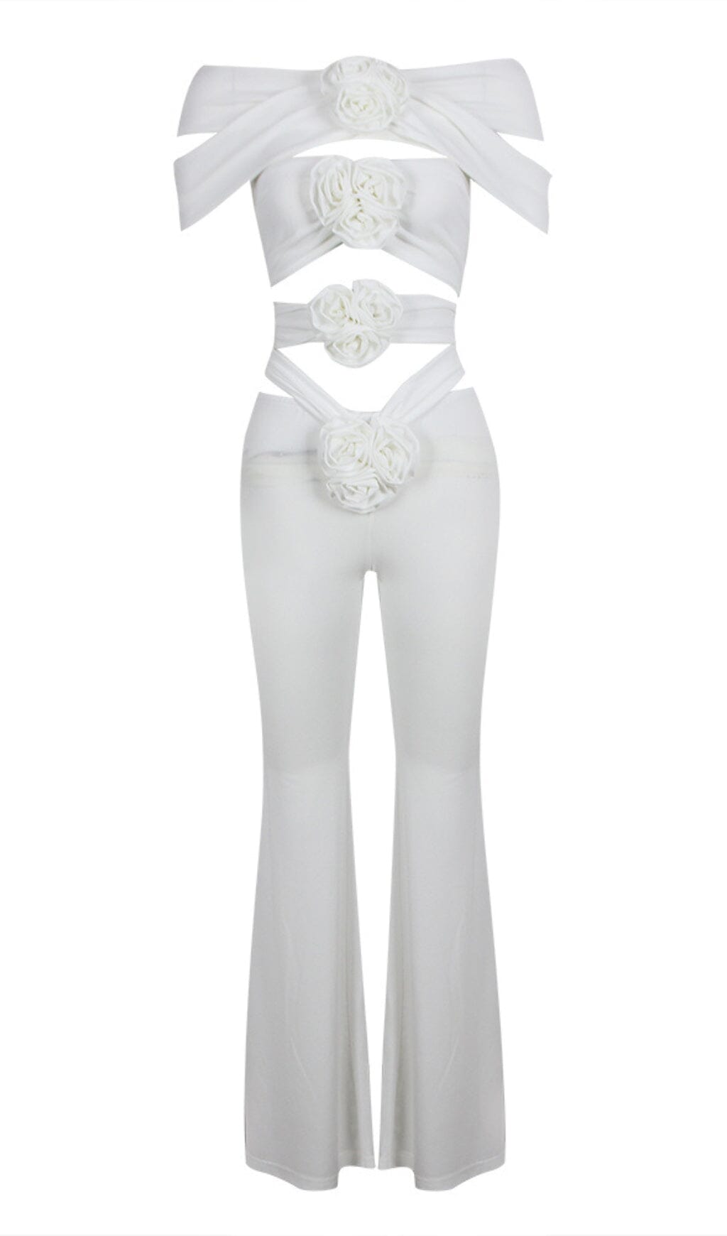 RUCHED CUTOUT FLARED TWO PIECE SET IN WHITE
