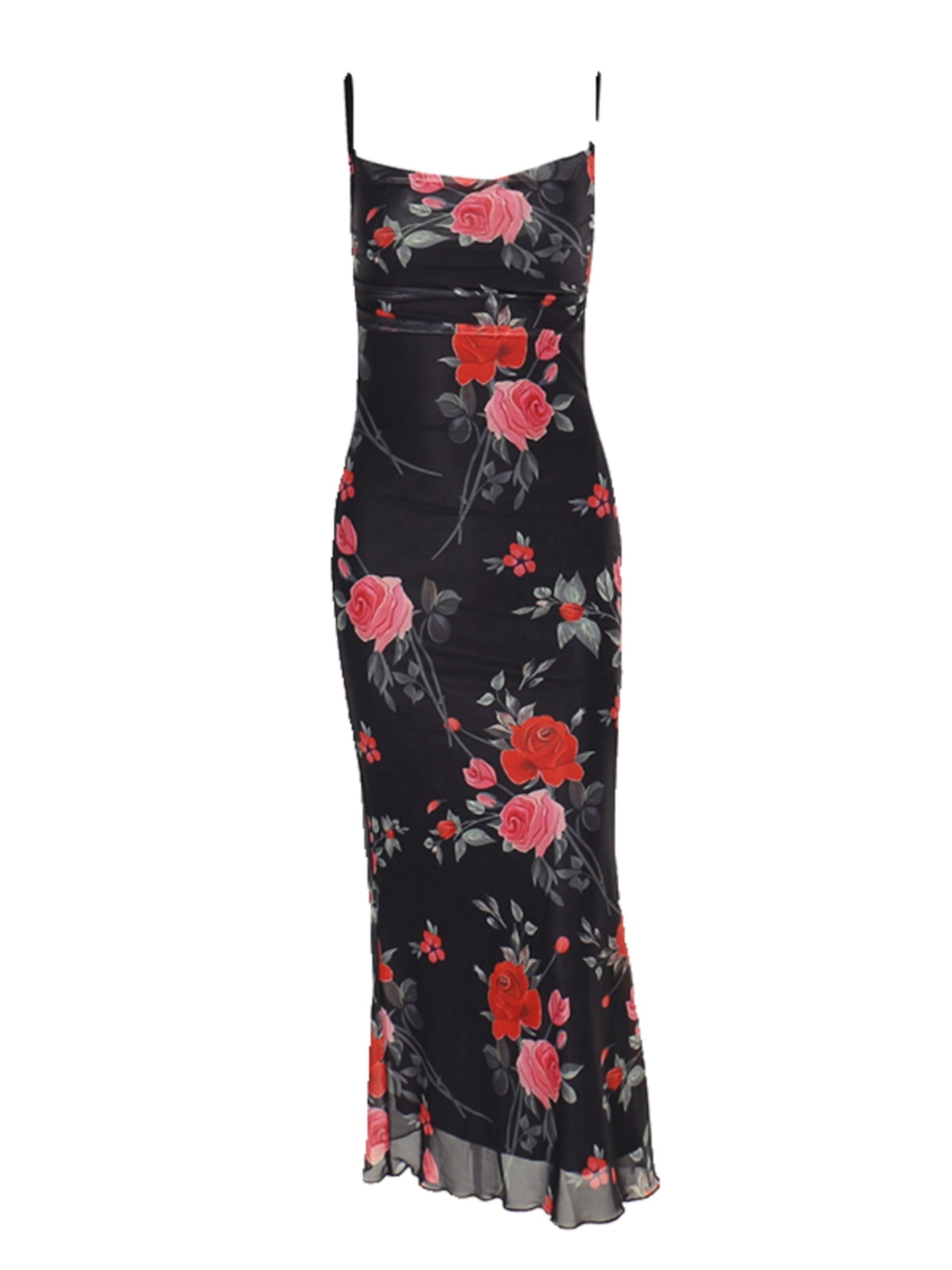 Unleash your inner good girl with the Sarenity Floral Maxi Dress. This slim-fitting. elegant and sexy suspender dress is perfect for date night. Add a touch of romance to your wardrobe with this versatile and chic black dress. Part of the Aesvs Date Night Collection.