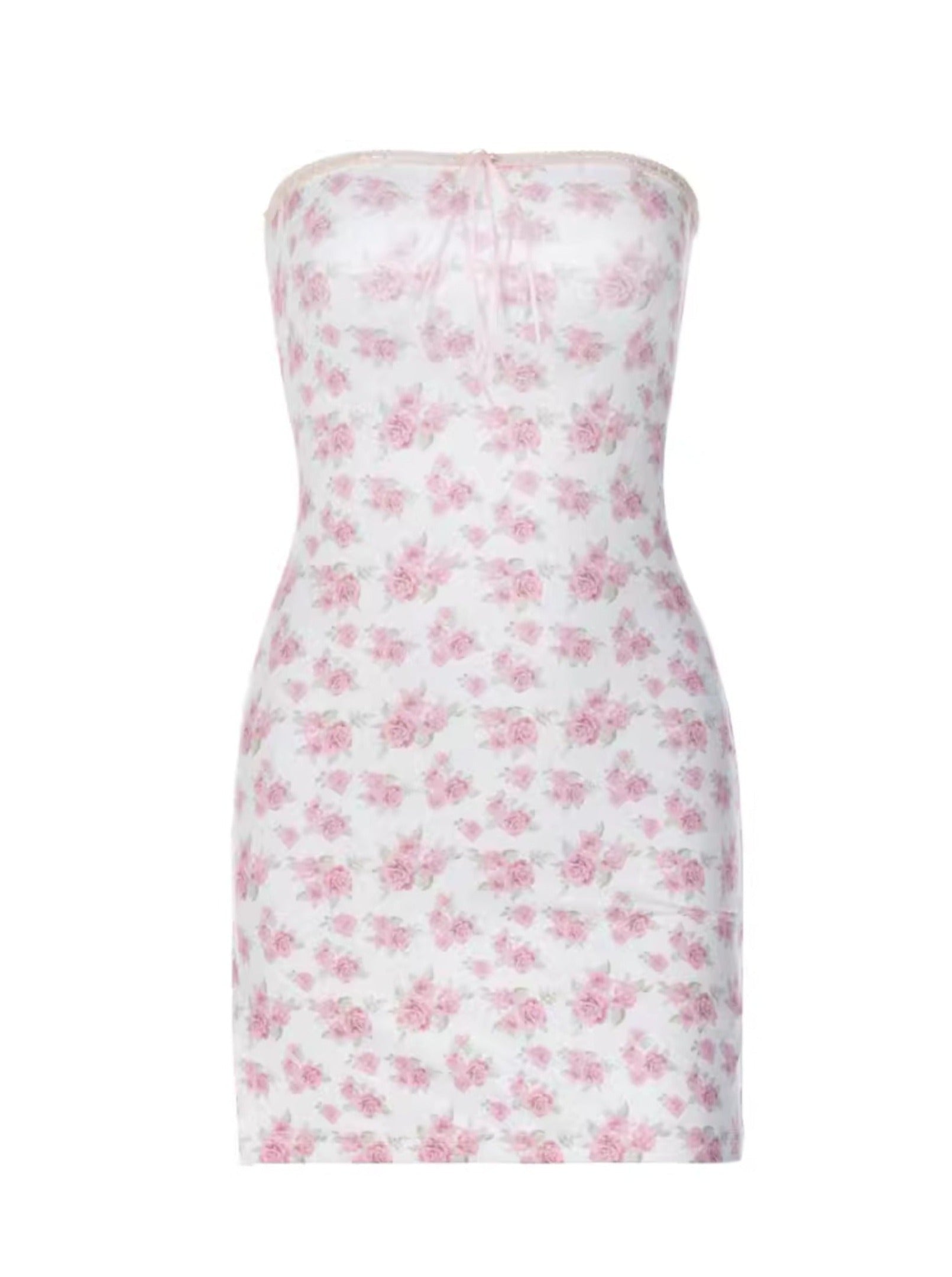 "Get ready to bloom this summer with our Sia Floral Mini Dress! Featuring a romantic. French-inspired design. this strapless dress is perfect for any occasion. Its slim fit and cross back add a touch of elegance. Part of our 'Summer's in Bloom' Collection. this dress will surely bring out your inner good girl (but with a stylish twist)!"