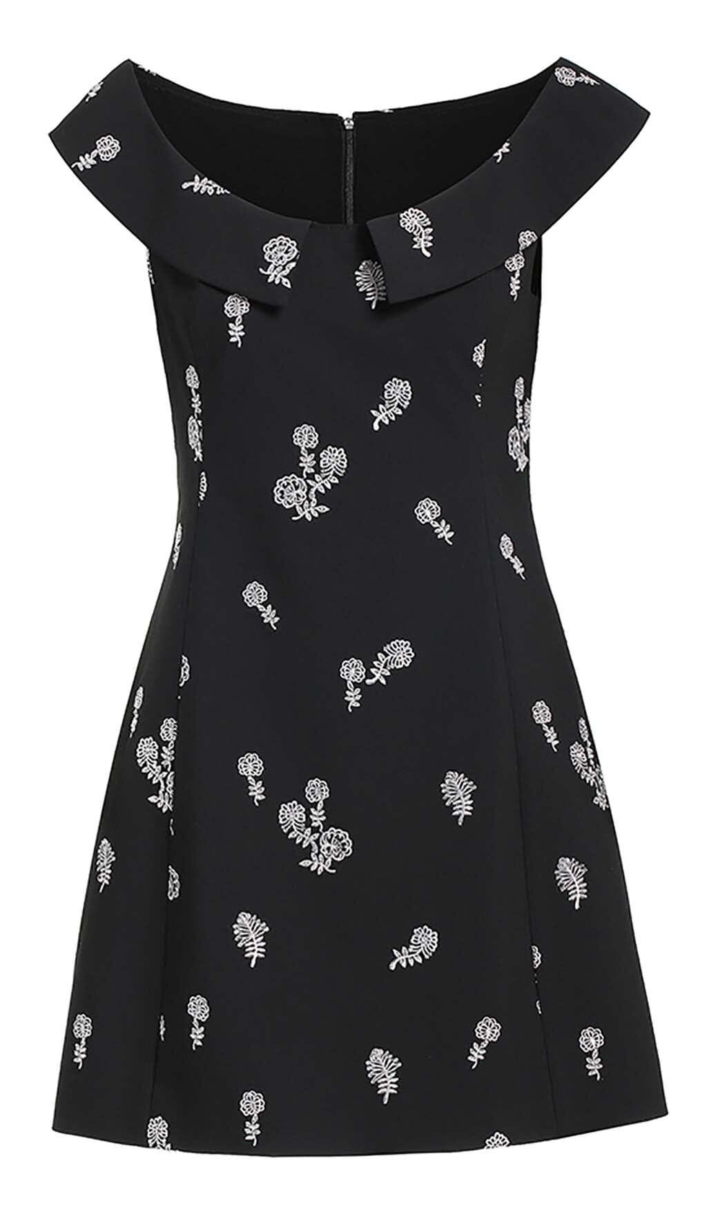 SLEEVELESS EMBROIDERED MINI DRESS IN BLACK