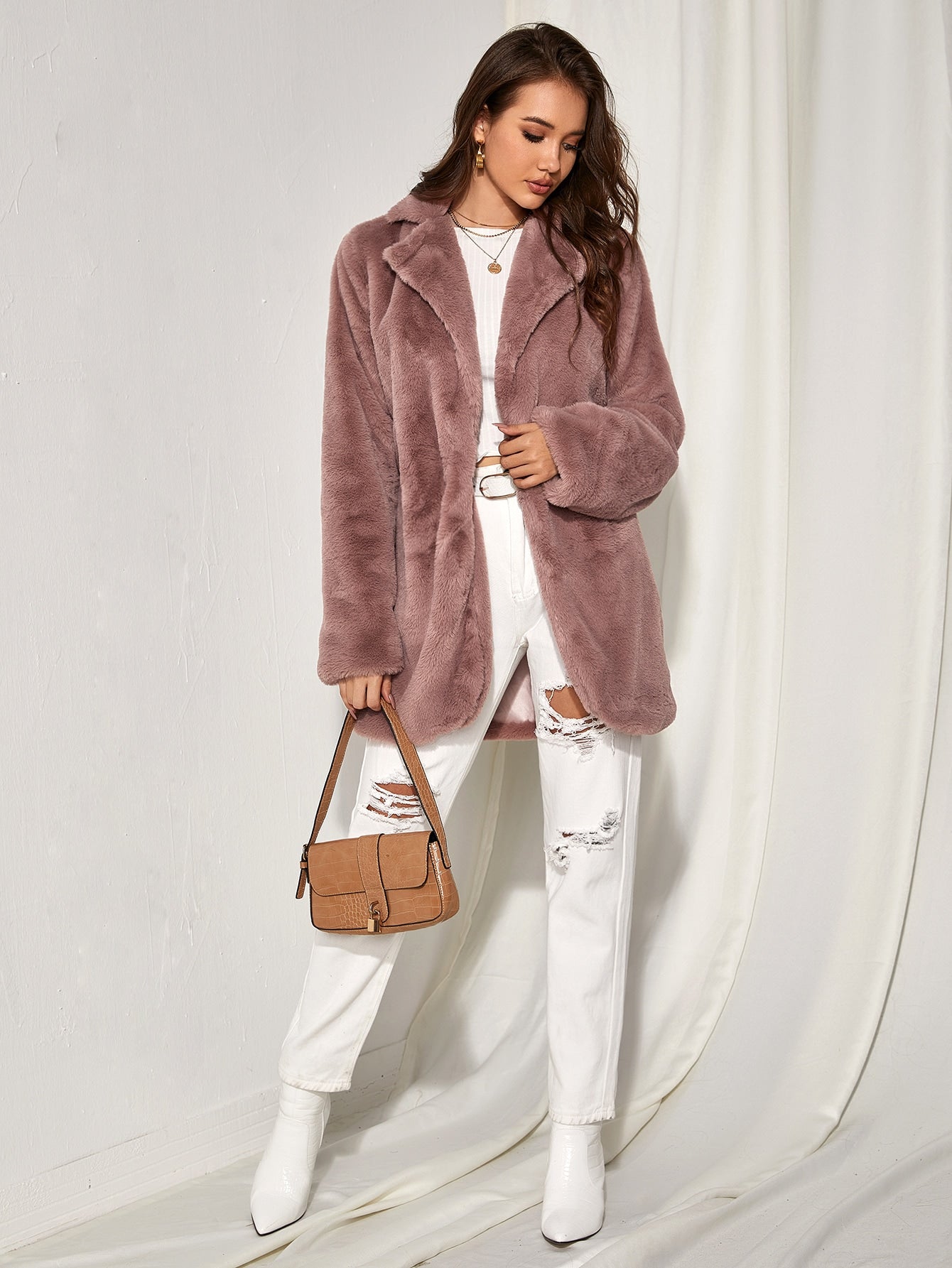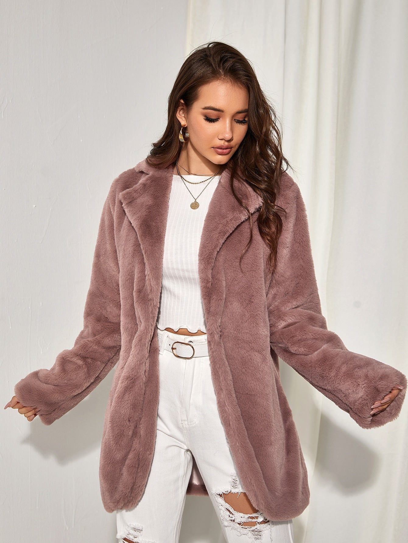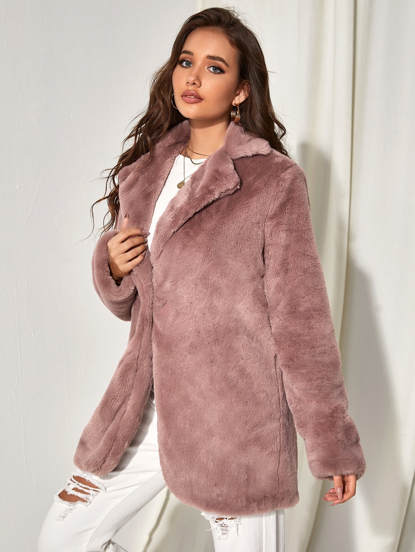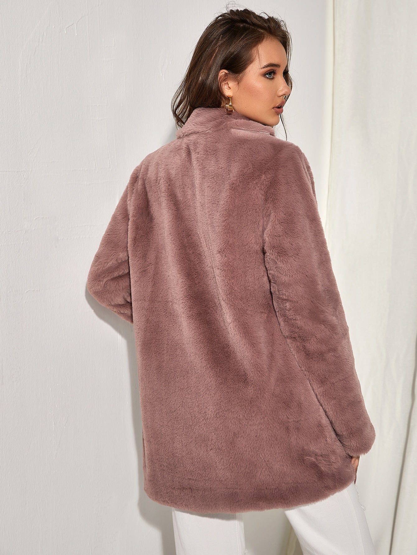 Solid Open Front Fuzzy Coat