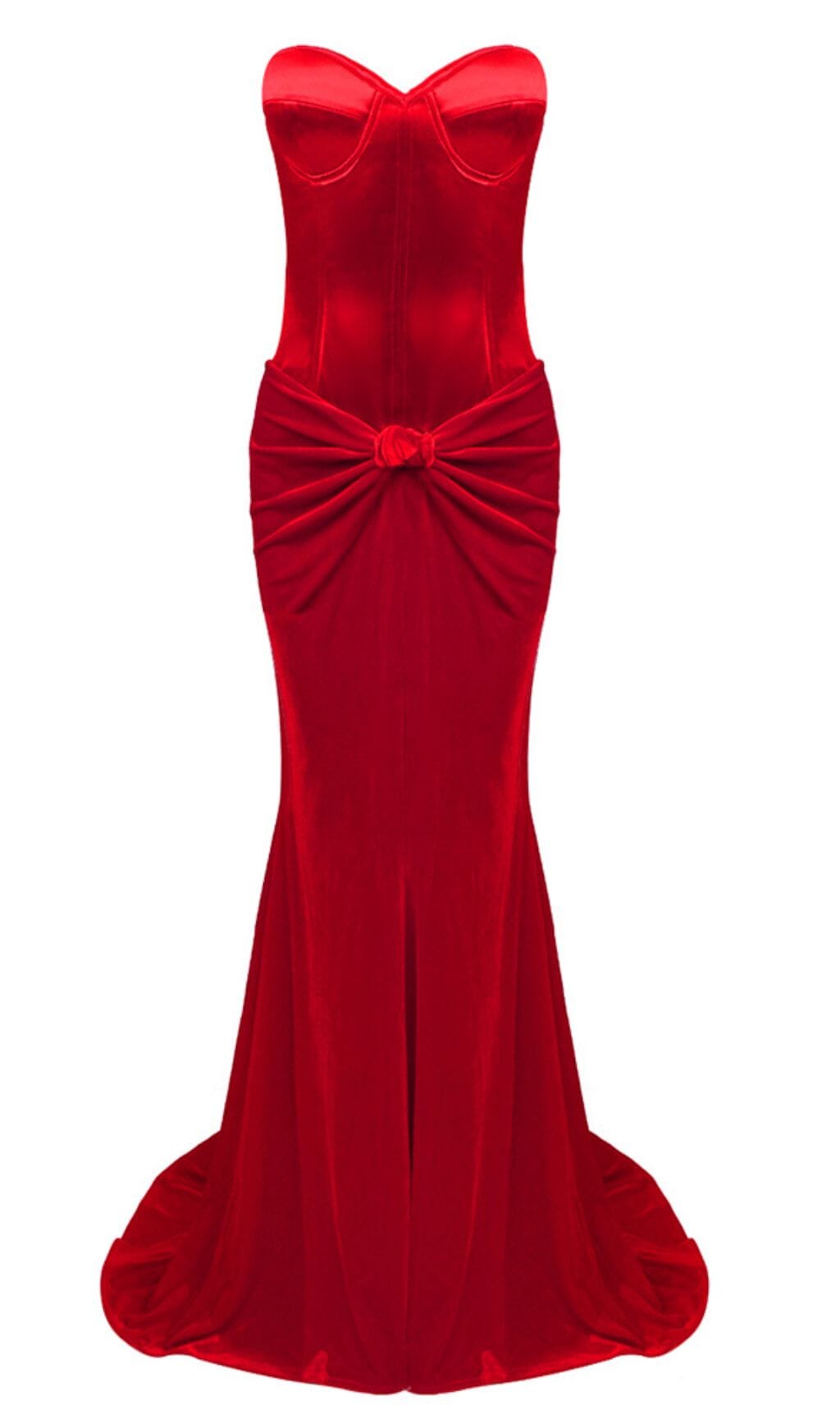 STRAPLESS CORSET TWO-PIECE DRESS IN RED