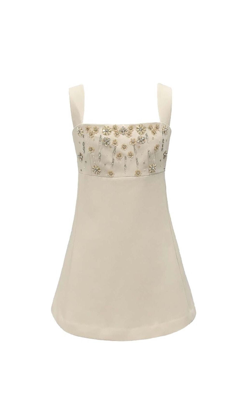 STRAPPY CRYSTAL EMBELLISHED MINI DRESS IN BEIGE