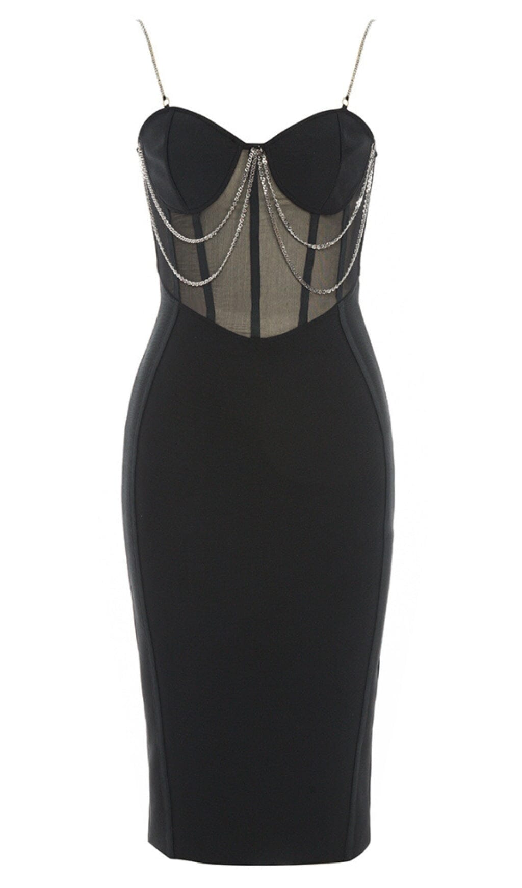 If you're looking for a stunning dress to wear to your next formal event or special occasion. check out our Strappy Mesh Corset Midi Dress in Black! This dress is perfect for women who want a unique and sophisticated look. It features a beautiful corset design with strappy detailing that accentuates your curves and creates a flattering silhouette. The high-quality mesh material is soft and breathable. making it comfortable to wear all night long. Whether you're attending a wedding or a fancy dinner party. this dress is sure to turn heads and make you feel confident and elegant.