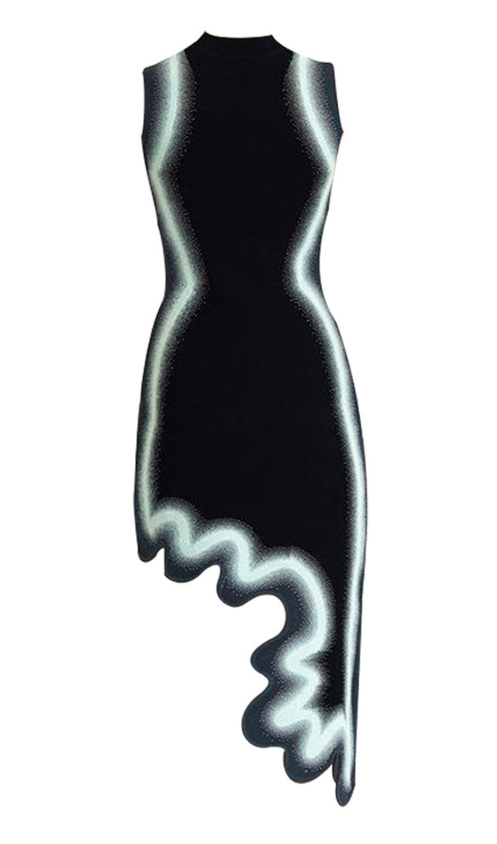 STRIPE ASYMMETRIC HIGH LOW DRESS IN BLACK