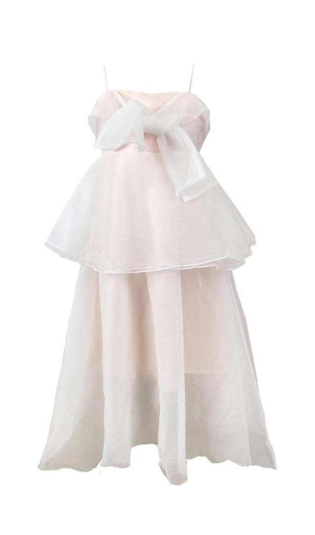 Want to be stylish at a party without being overly flamboyant? An elegant yarn solid color dress will be your first choice. Thin straps show off your collarbones and shoulders. and fluffy. soft white gauze makes you light and bright. The bow on your chest makes you look sweet. the layers of white gauze make you feel like you're in the white clouds. and the voluminous A-line gives you an elegant yet formal look that looks like something out of A fairy tale. Any combination of simple jewelry with the same color. a little bit as the finishing touch. is very perfect.
