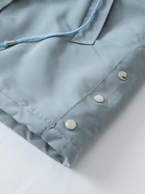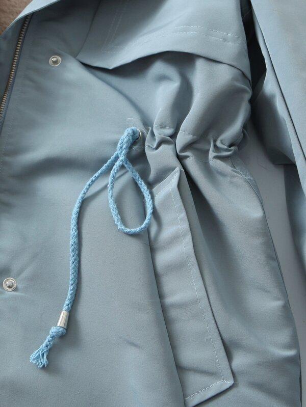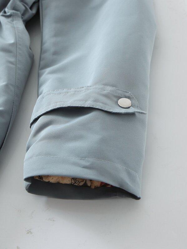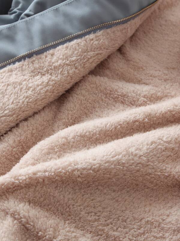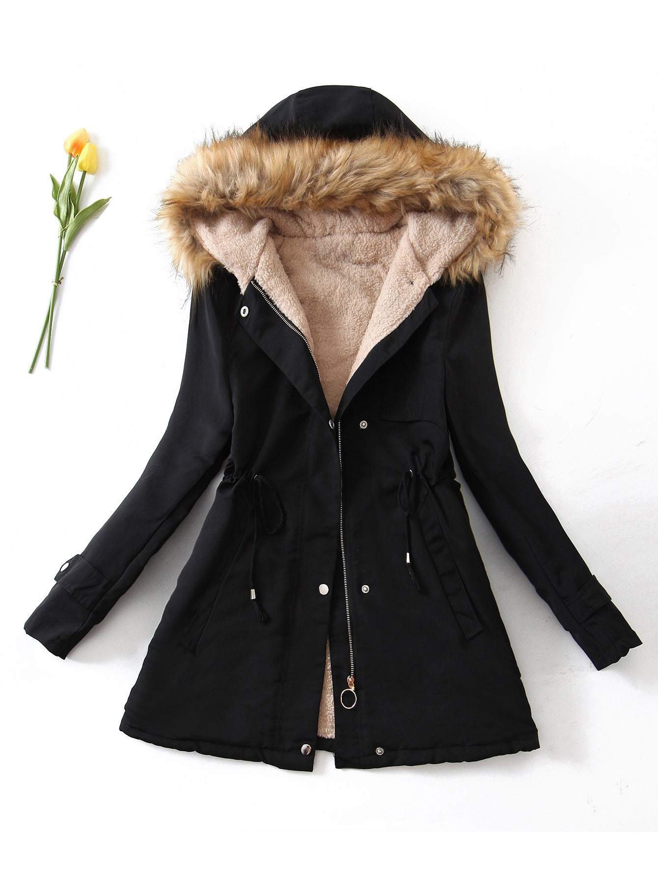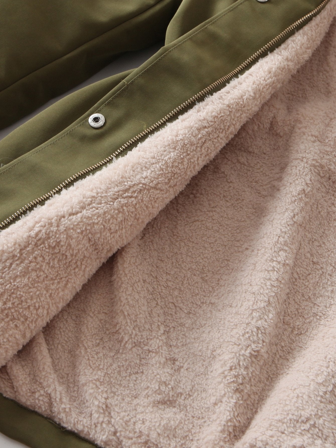 Contrast Faux Fur. Drawstring. Button. Ring. Zipper
